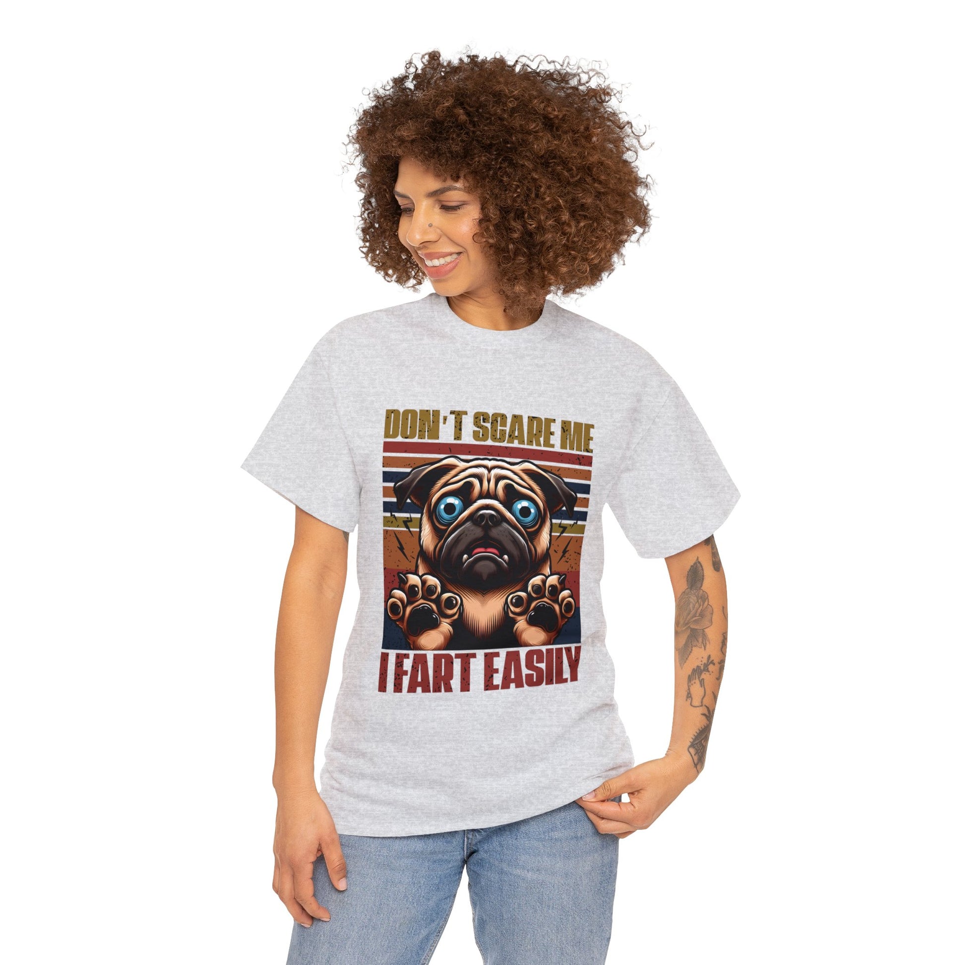 - **Optimal Weight:** At a balanced 5.3 oz/yd² (180 g/m²), this shirt finds the sweet spot between sturdiness and comfort. Light enough for a breathable feel yet resilient to handle your daily adventures with your pug companion.