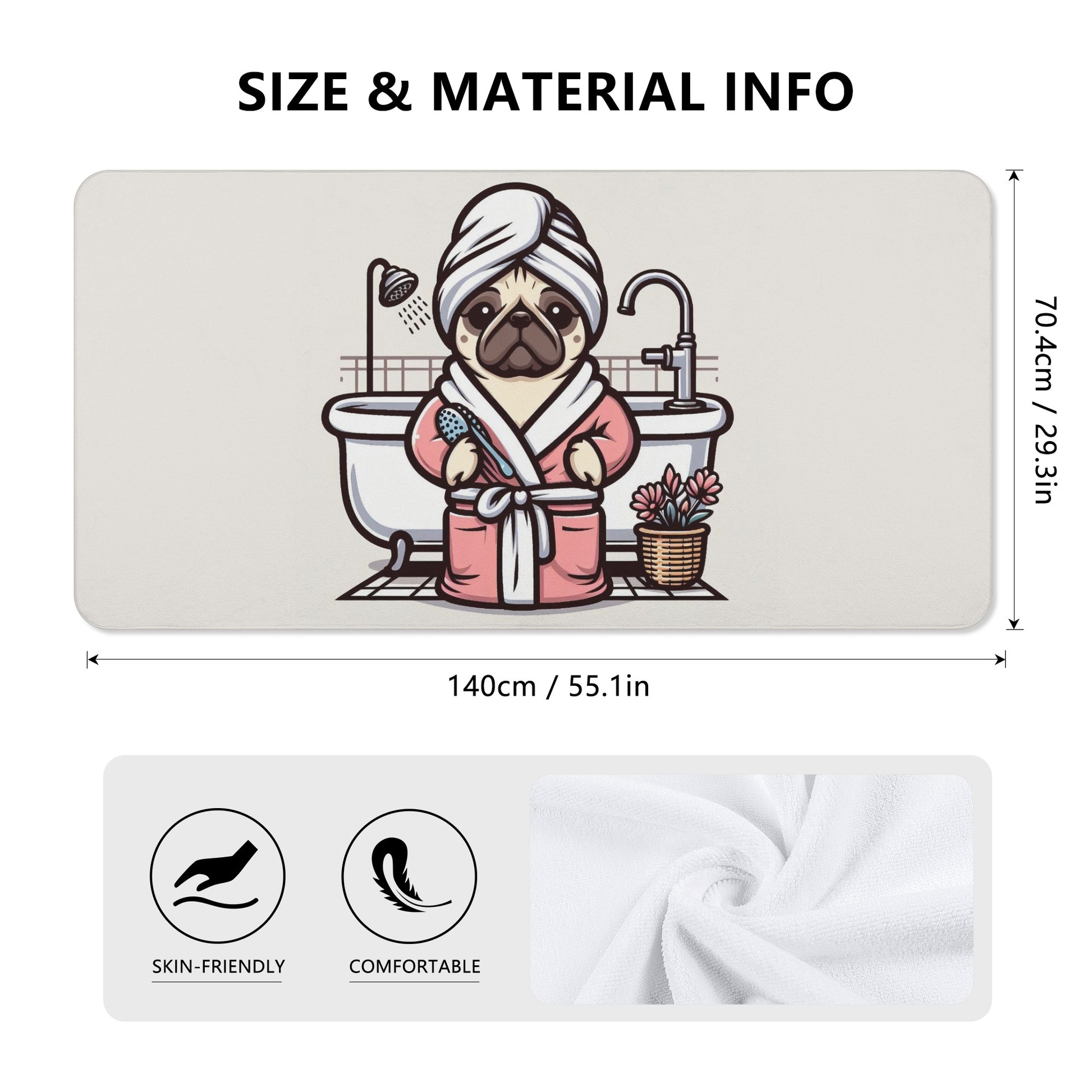 Do you love pugs and unicorns? Then this bath towel is perfect for you! This towel features a cute and colorful scene of a pug dog with a unicorn in a bathtub, surrounded by hearts and bubbles. It will brighten up your bathroom and make your bathing time more fun and relaxing.