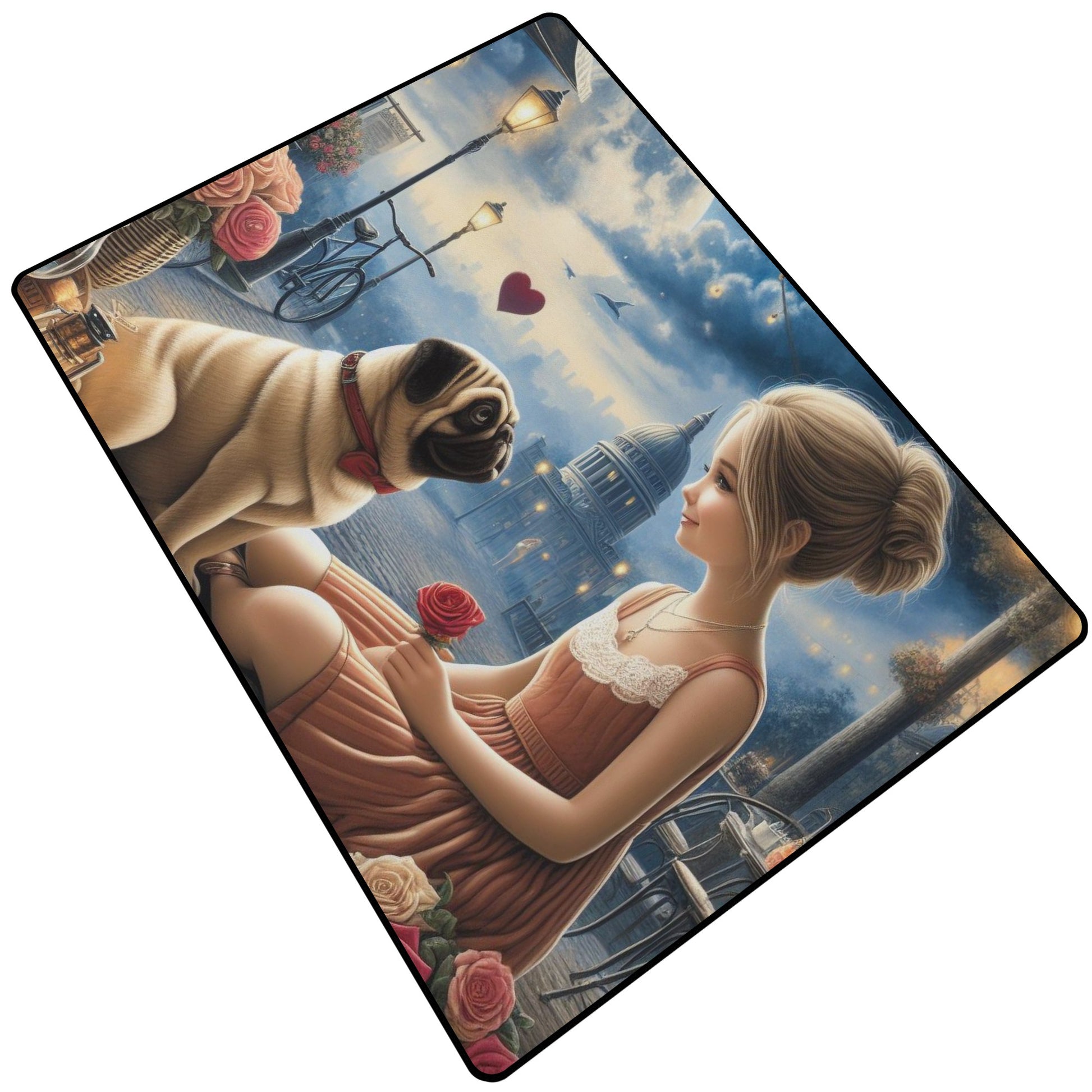 Indulge in the luxury of our Soft Polyester-Crystal Velvet Rugs, designed exclusively for pug dog enthusiasts. Our rugs feature: