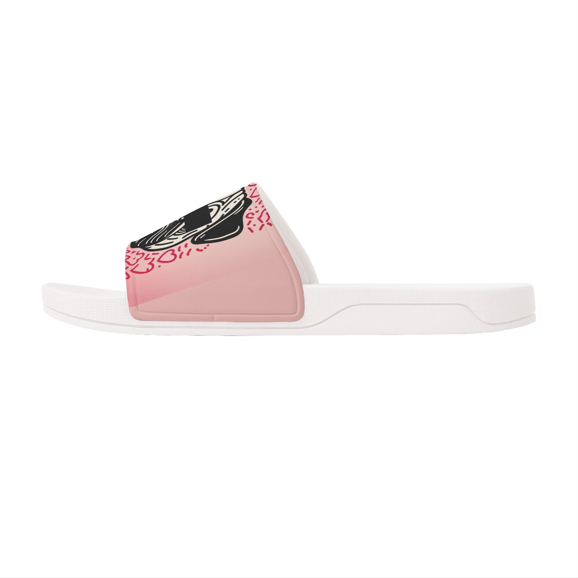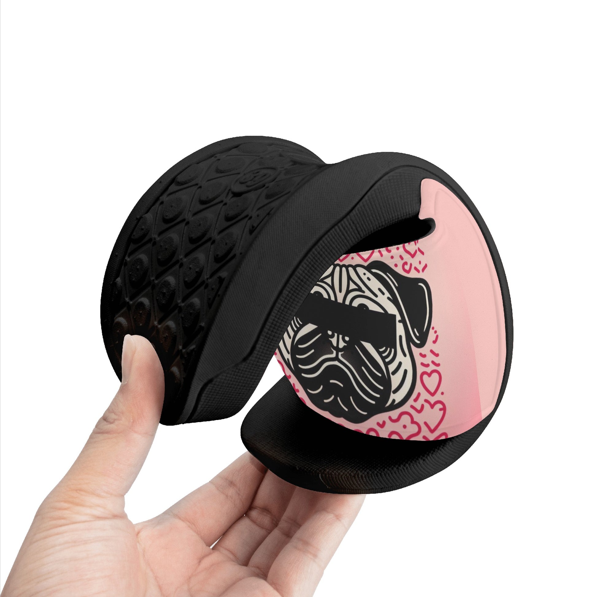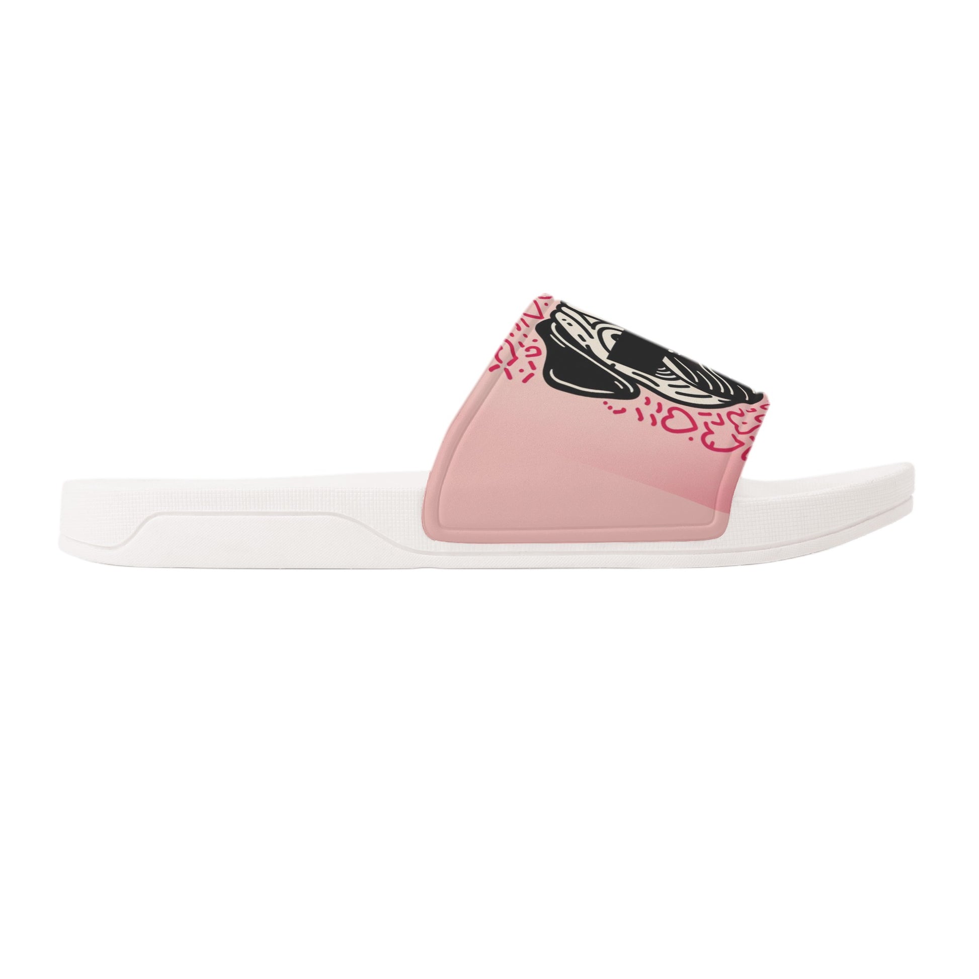 Unleash your love for pugs with our custom printed slide sandals, featuring an open toe and flat heel style for ultimate comfort. Here's what makes them special: