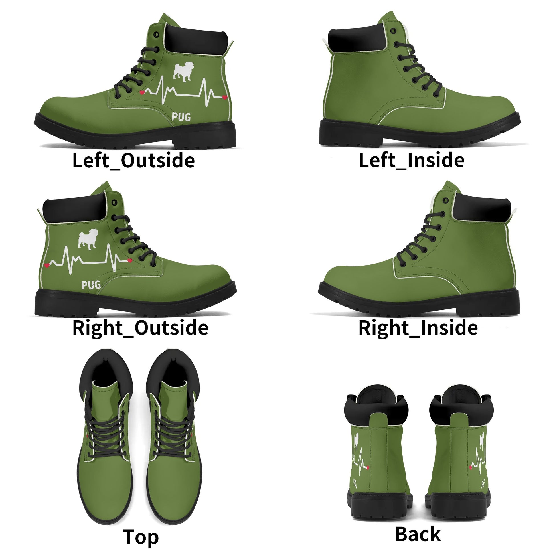 • Rugged Details: Custom-developed reinforced eyelets and polyester laces enhance the rugged aesthetic, making these boots a perfect match for the pug lover's adventurous spirit.