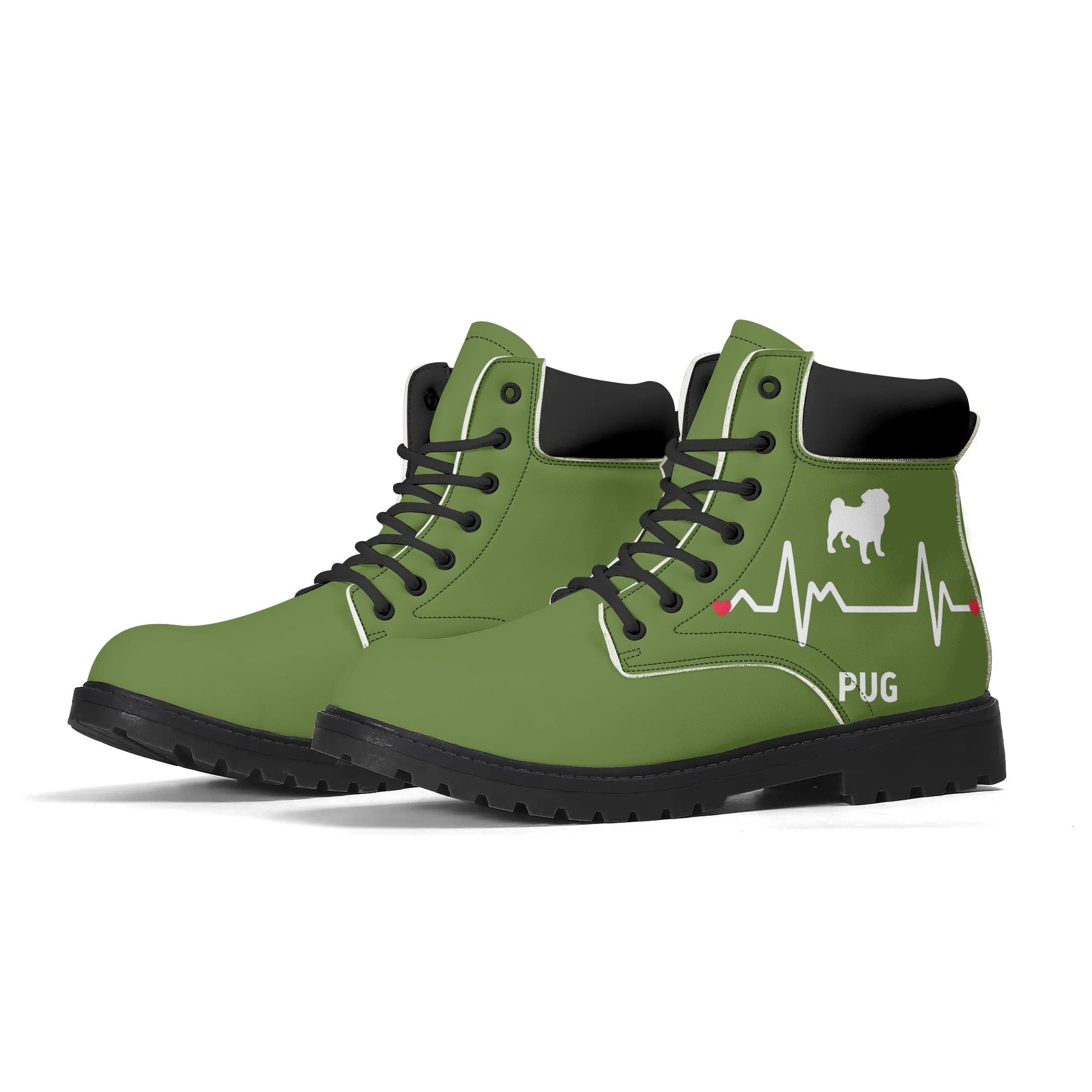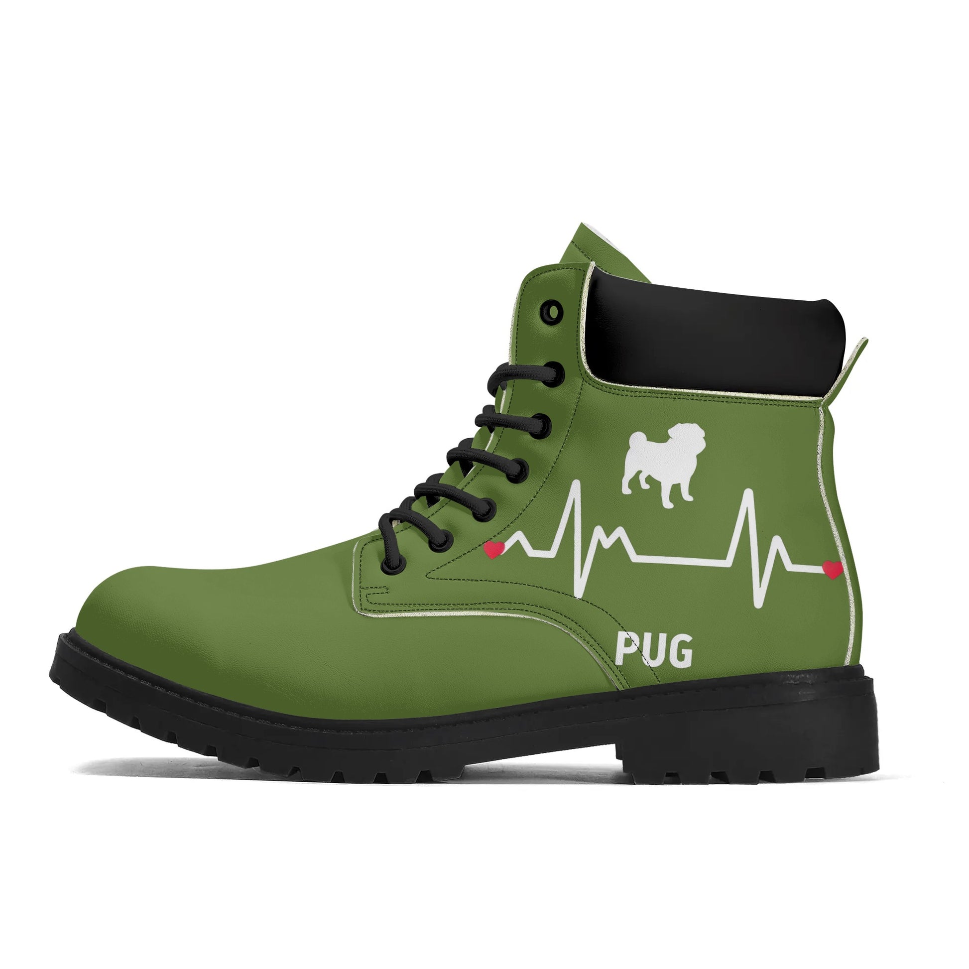• Rugged Details: Custom-developed reinforced eyelets and polyester laces enhance the rugged aesthetic, making these boots a perfect match for the pug lover's adventurous spirit.