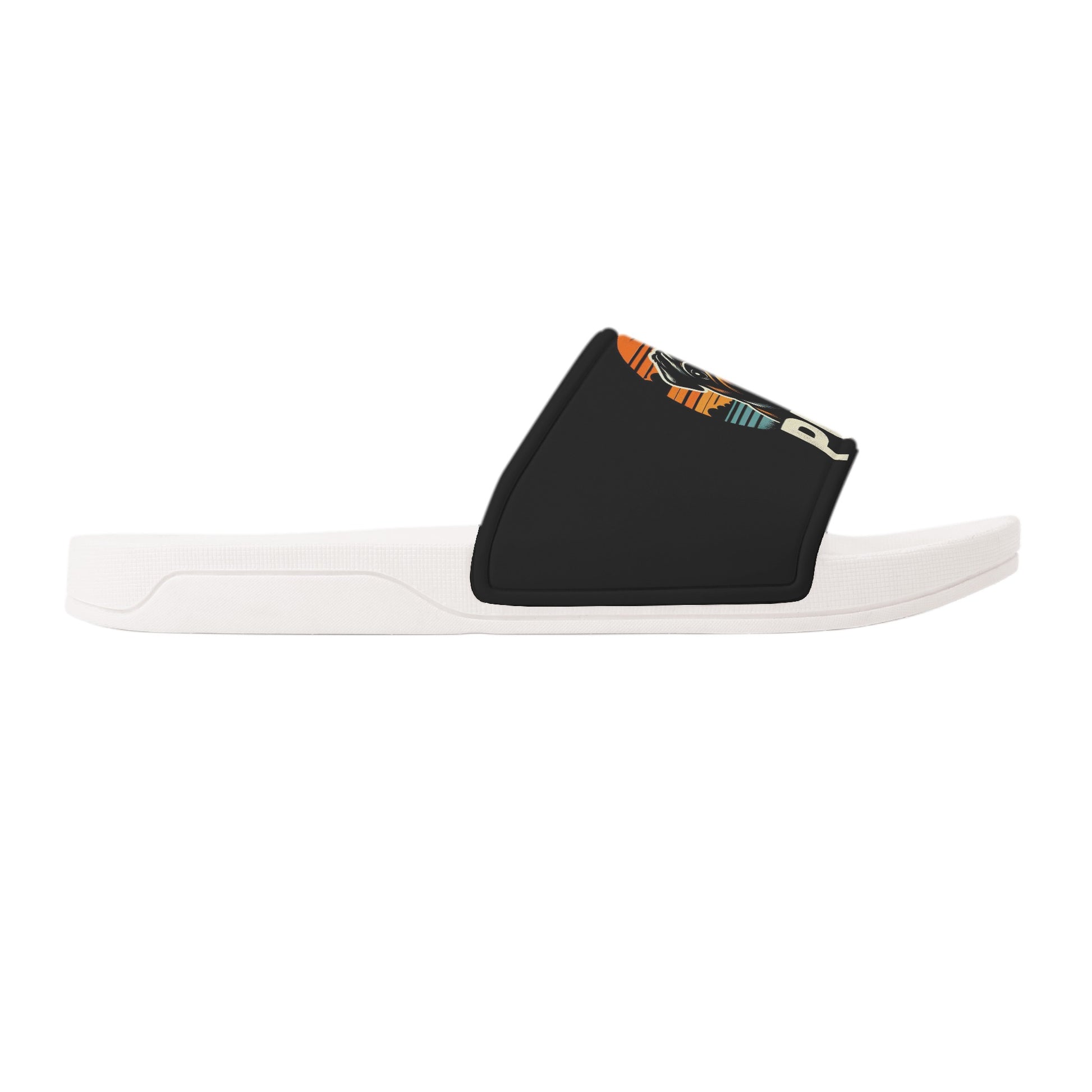 Unleash your love for pugs with our custom printed slide sandals, featuring an open toe and flat heel style for ultimate comfort. Here's what makes them special: