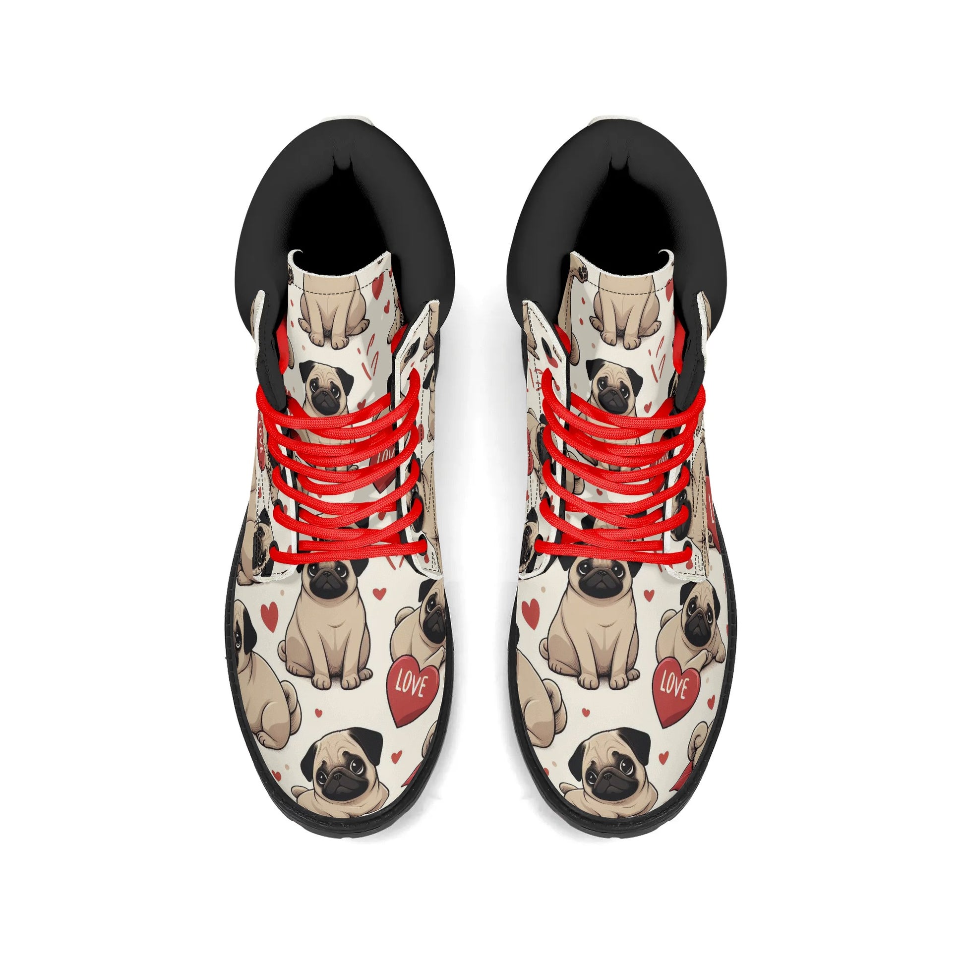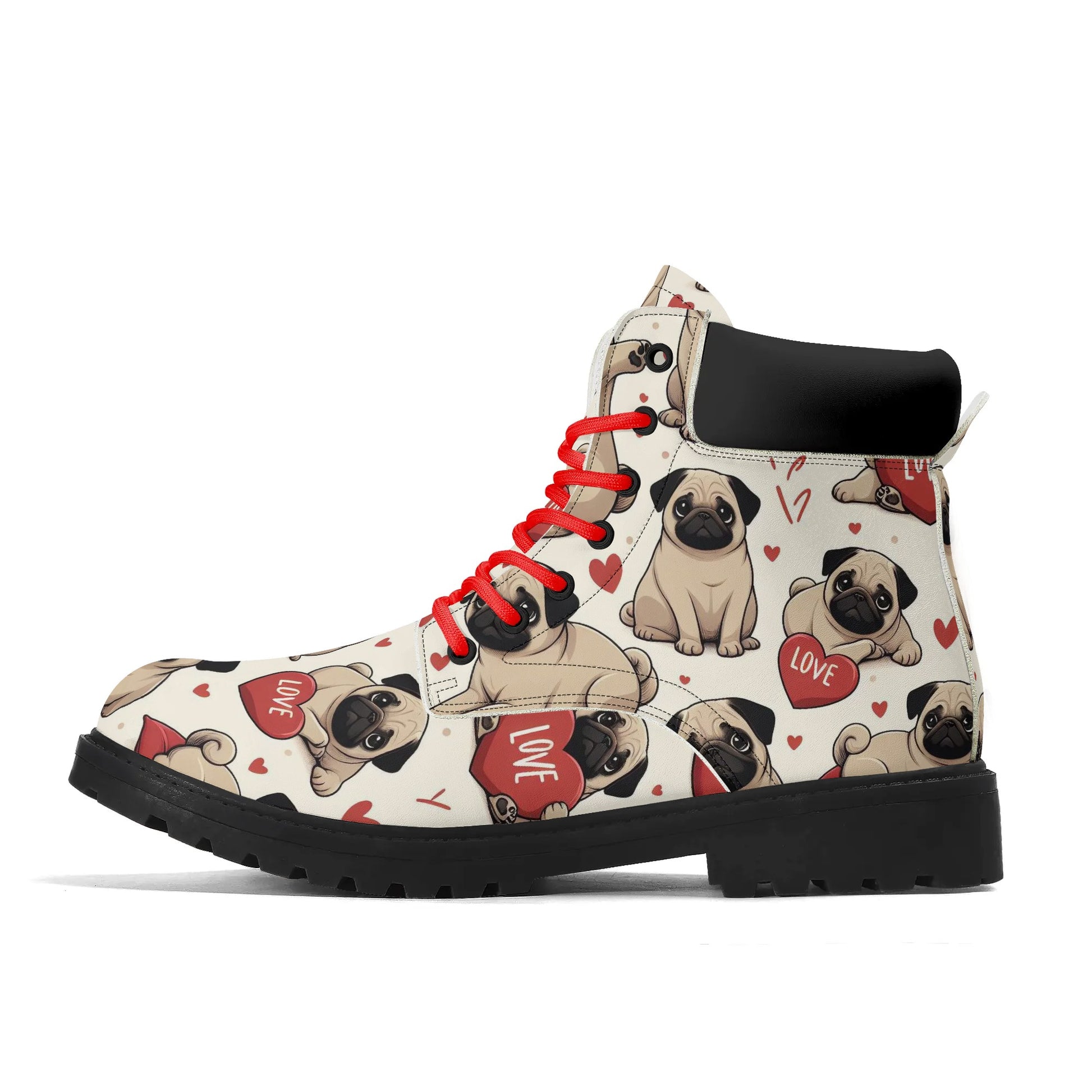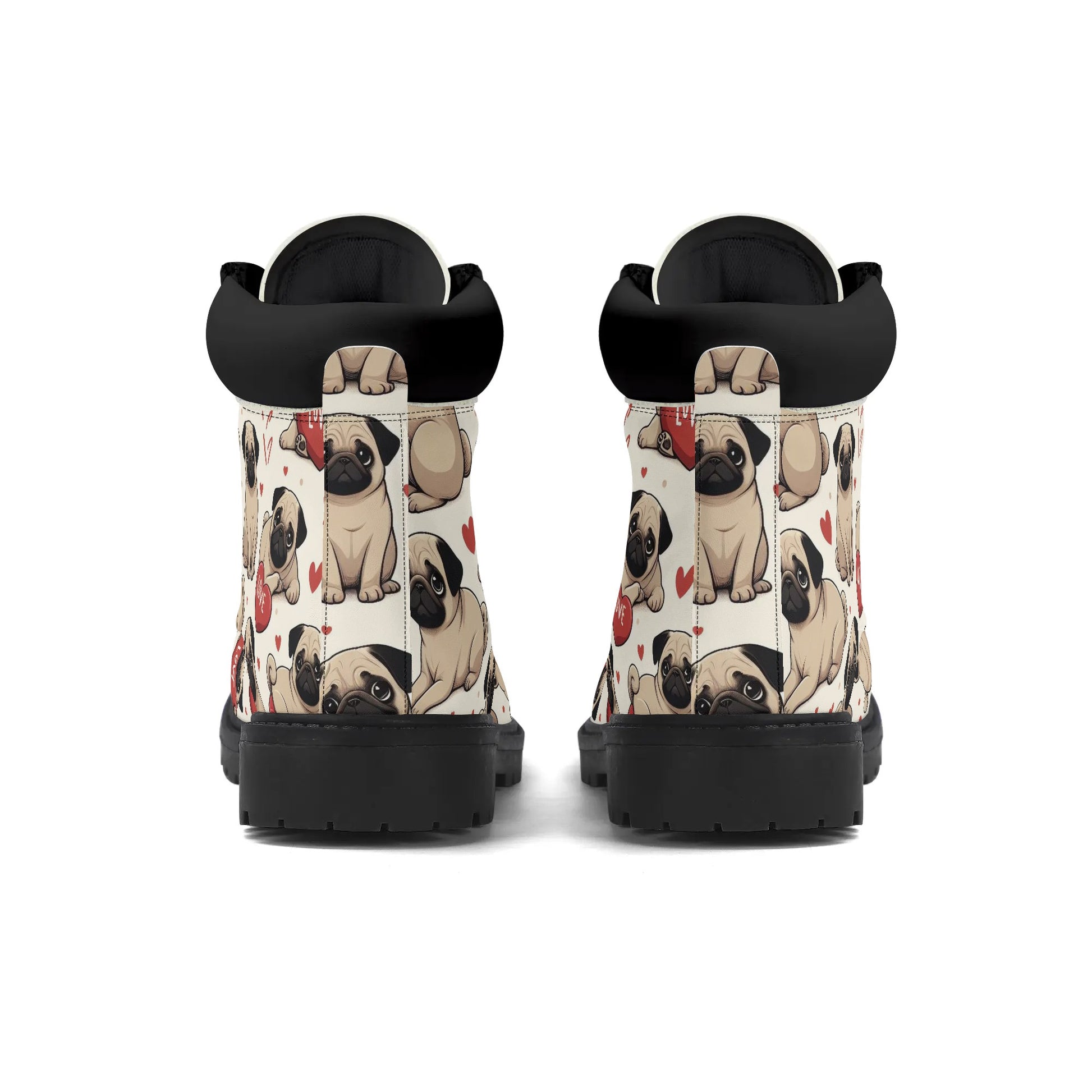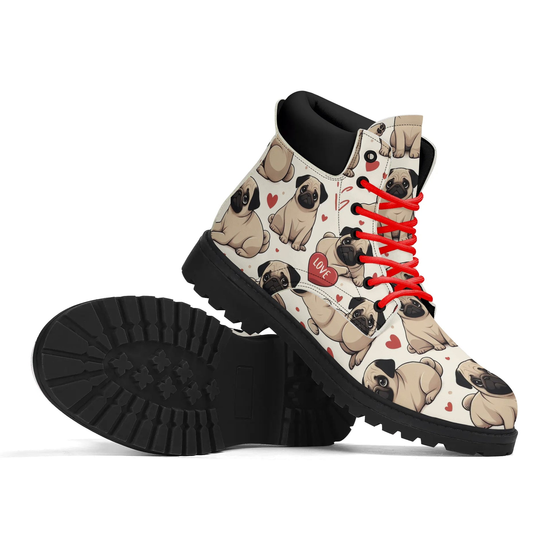 • Rugged Details: Custom-developed reinforced eyelets and polyester laces enhance the rugged aesthetic, making these boots a perfect match for the pug lover's adventurous spirit.