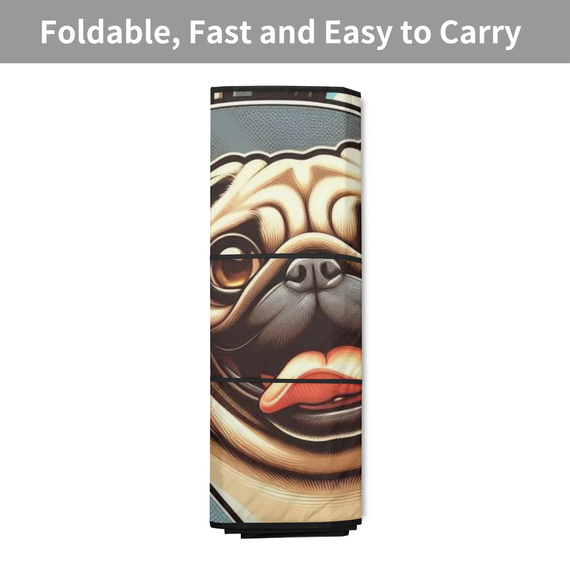 - To maintain the pristine condition of your Pug Love Car Sunshade, simply wipe away any stains with a damp cloth and allow it to dry.