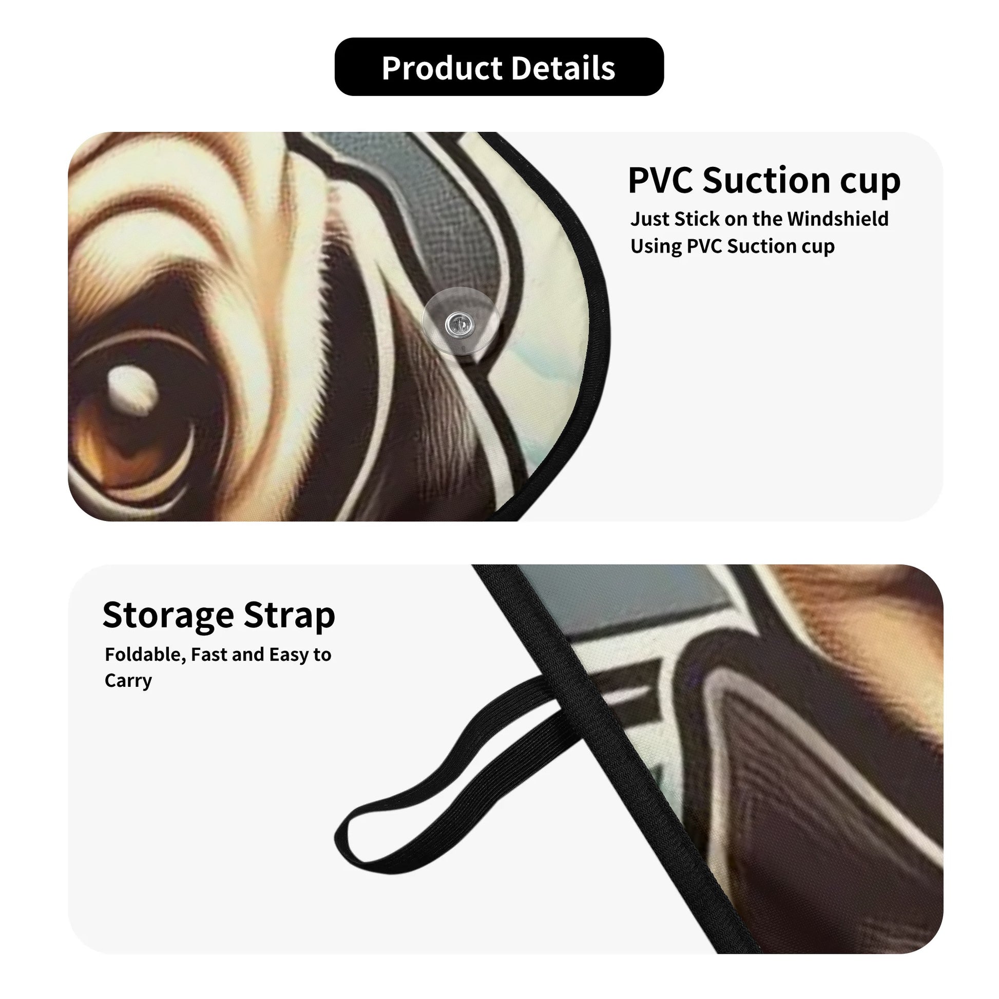 - Installation: Equipped with durable PVC suction cups, the sunshade attaches firmly to your windshield, making it simple to set up or remove as needed.