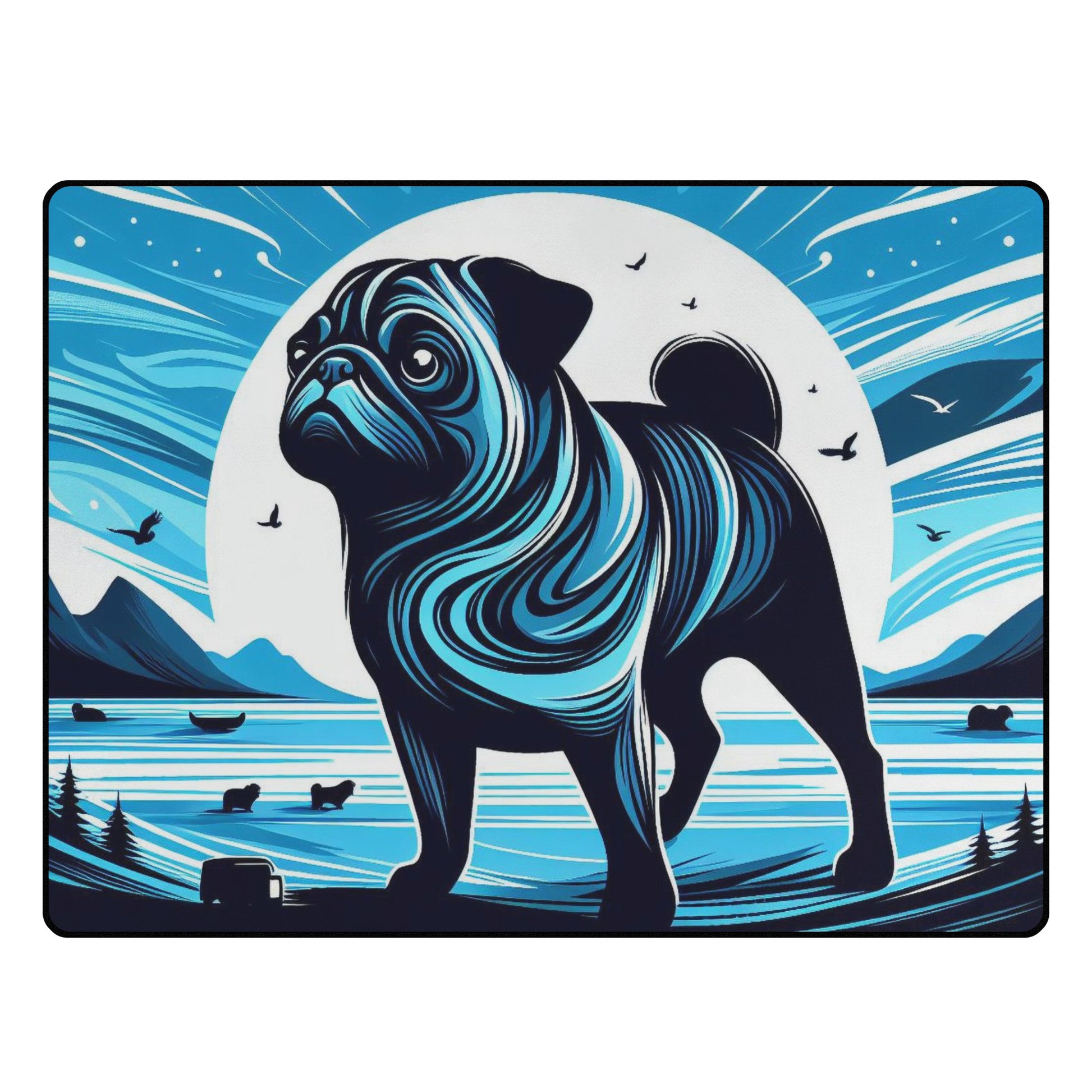 • Design: Each rug boasts a customized pug-themed print on the topside, adding a personalized touch to your space.