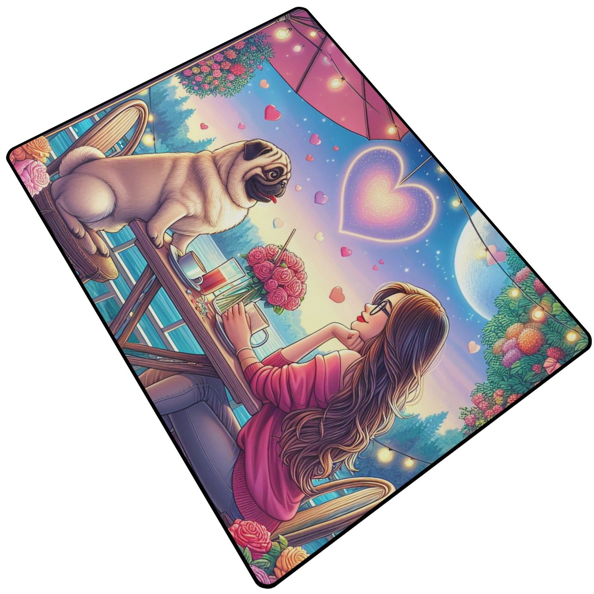 Indulge in the luxury of our Soft Polyester-Crystal Velvet Rugs, designed exclusively for pug dog enthusiasts. Our rugs feature: