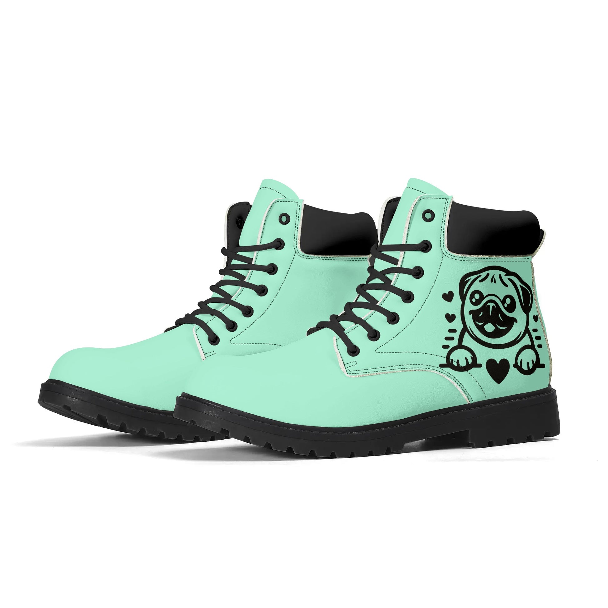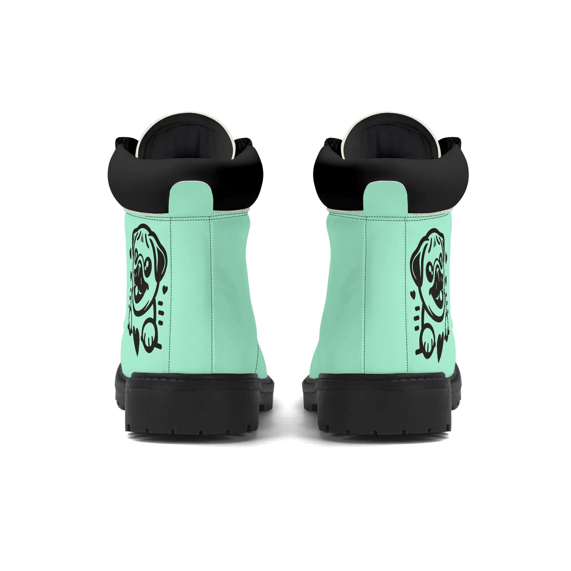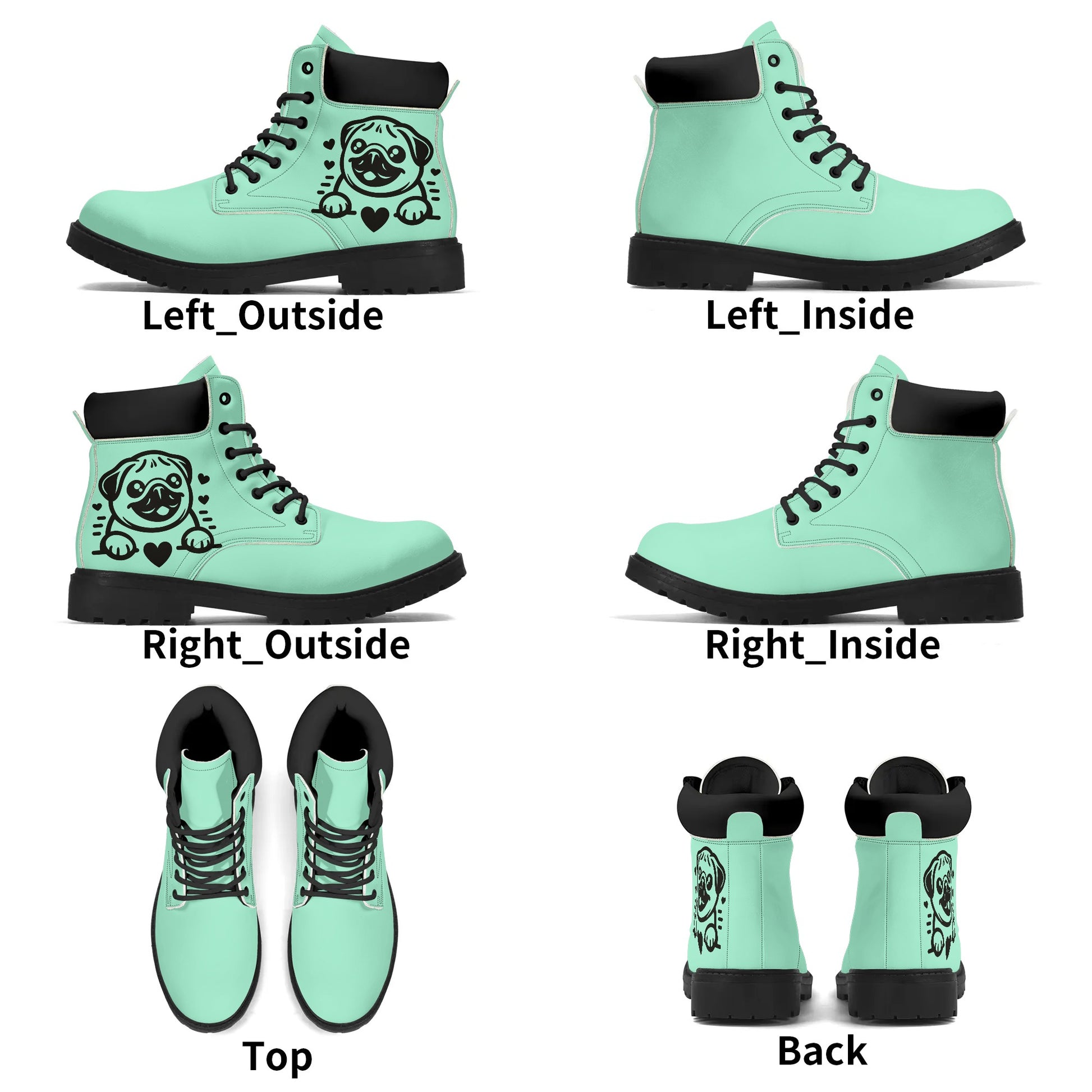 • Rugged Details: Custom-developed reinforced eyelets and polyester laces enhance the rugged aesthetic, making these boots a perfect match for the pug lover's adventurous spirit.