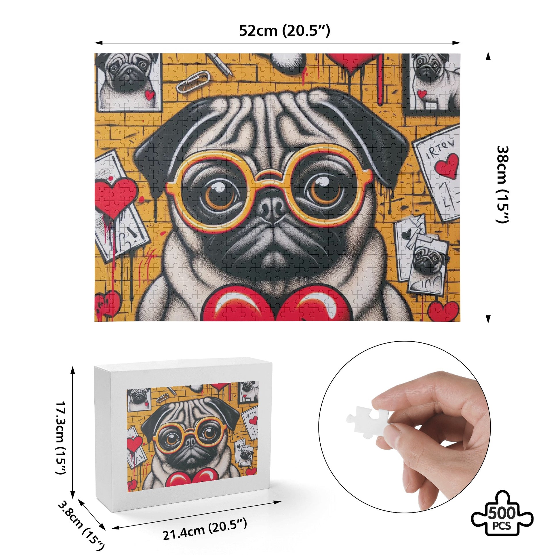 Introducing our Pug Lover's Delight: The 500-Piece Wooden Puzzle!