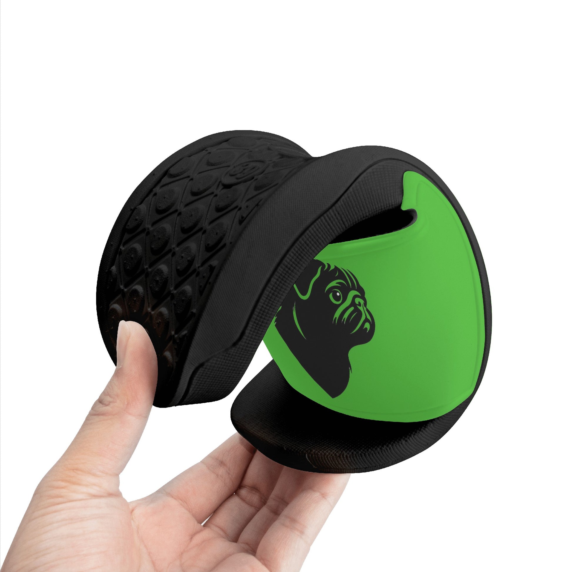 Unleash your love for pugs with our custom printed slide sandals, featuring an open toe and flat heel style for ultimate comfort. Here's what makes them special: