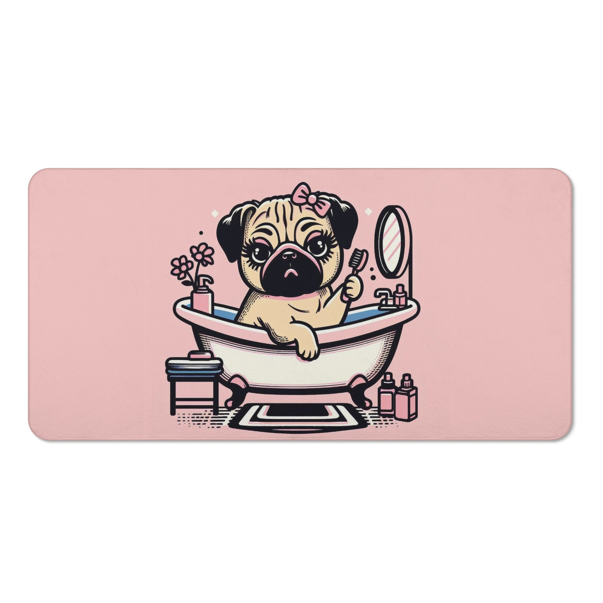 Do you love pugs and unicorns? Then this bath towel is perfect for you! This towel features a cute and colorful scene of a pug dog with a unicorn in a bathtub, surrounded by hearts and bubbles. It will brighten up your bathroom and make your bathing time more fun and relaxing.