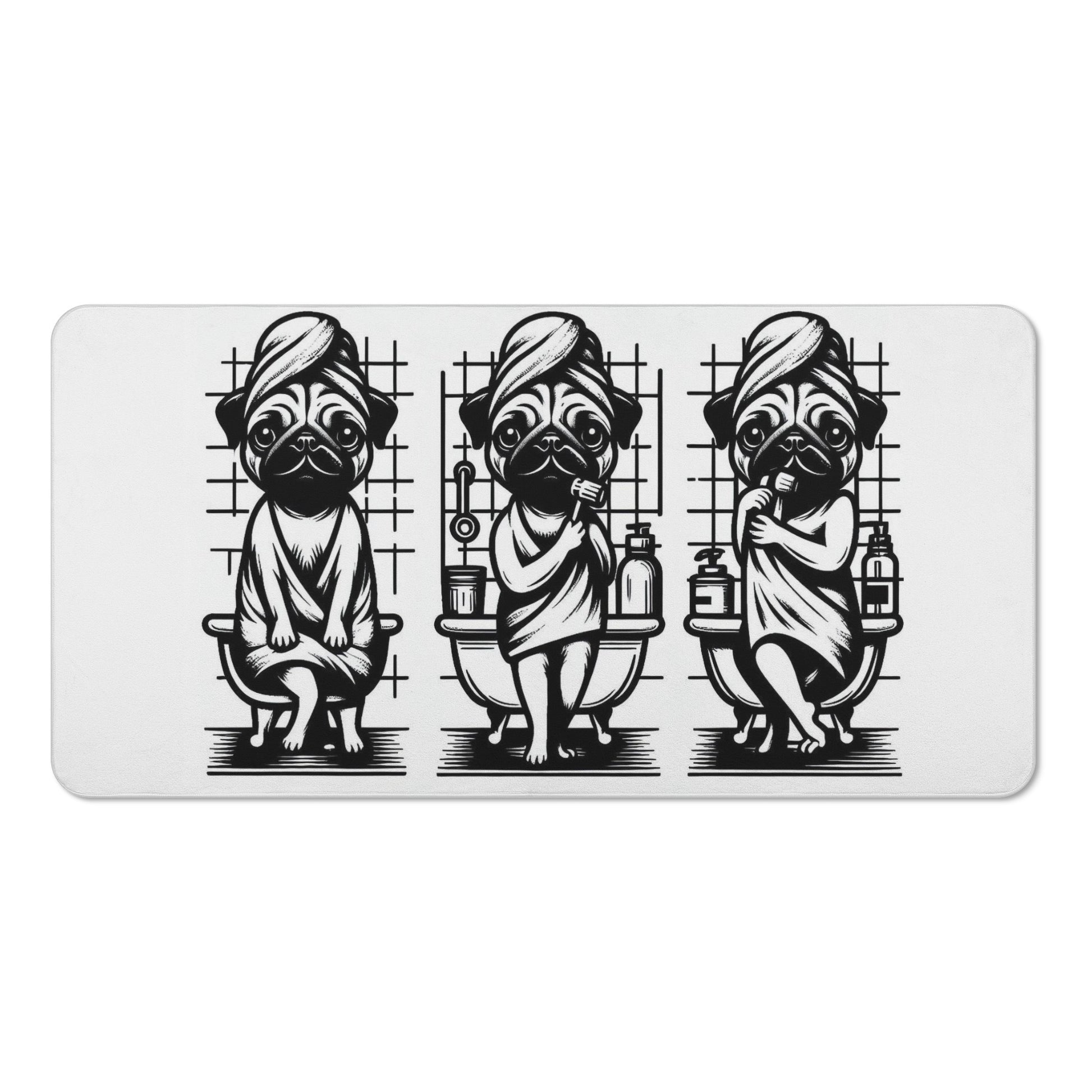 Do you love pugs and unicorns? Then this bath towel is perfect for you! This towel features a cute and colorful scene of a pug dog with a unicorn in a bathtub, surrounded by hearts and bubbles. It will brighten up your bathroom and make your bathing time more fun and relaxing.