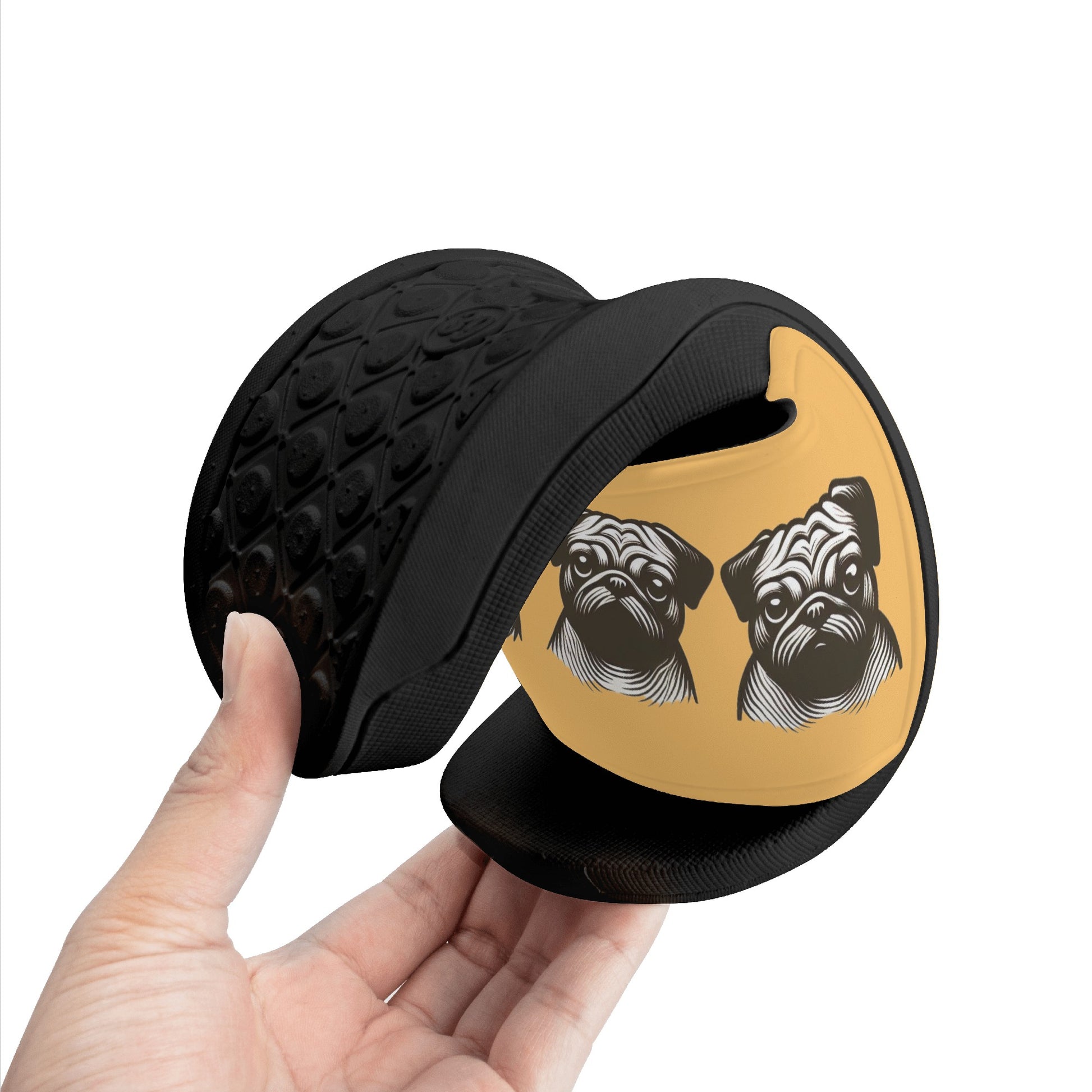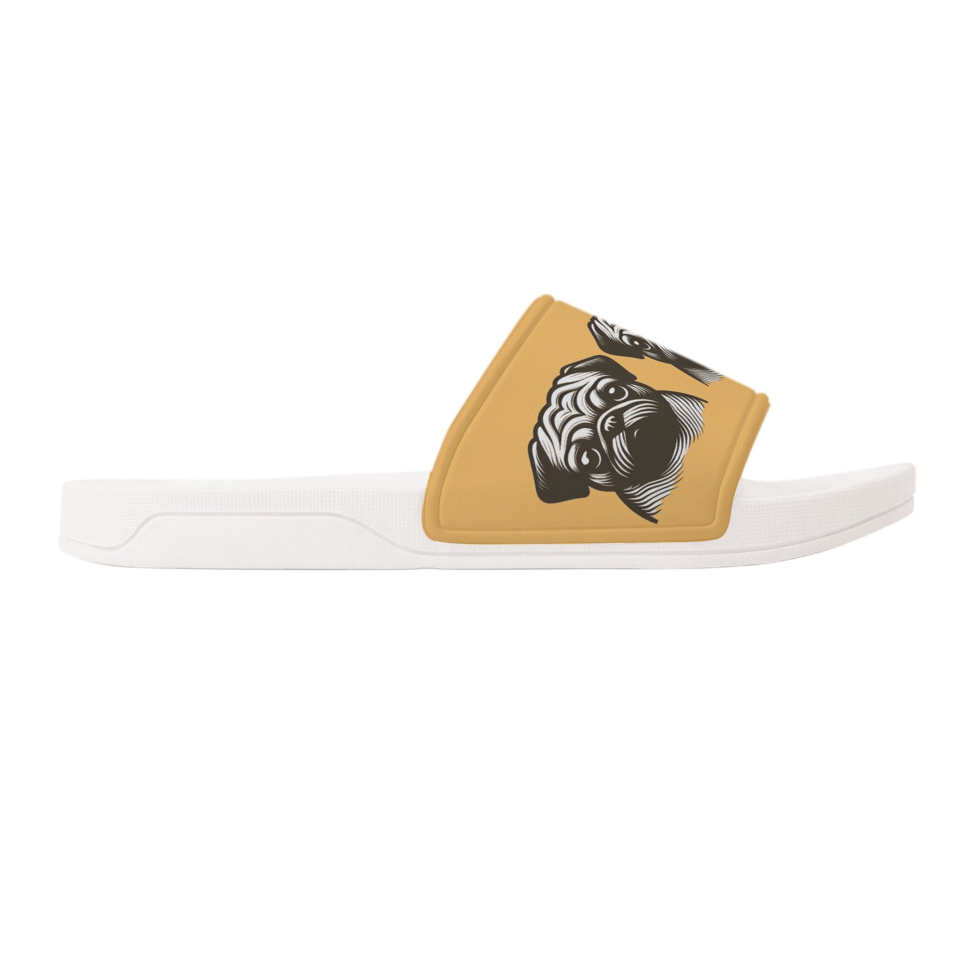 Unleash your love for pugs with our custom printed slide sandals, featuring an open toe and flat heel style for ultimate comfort. Here's what makes them special: