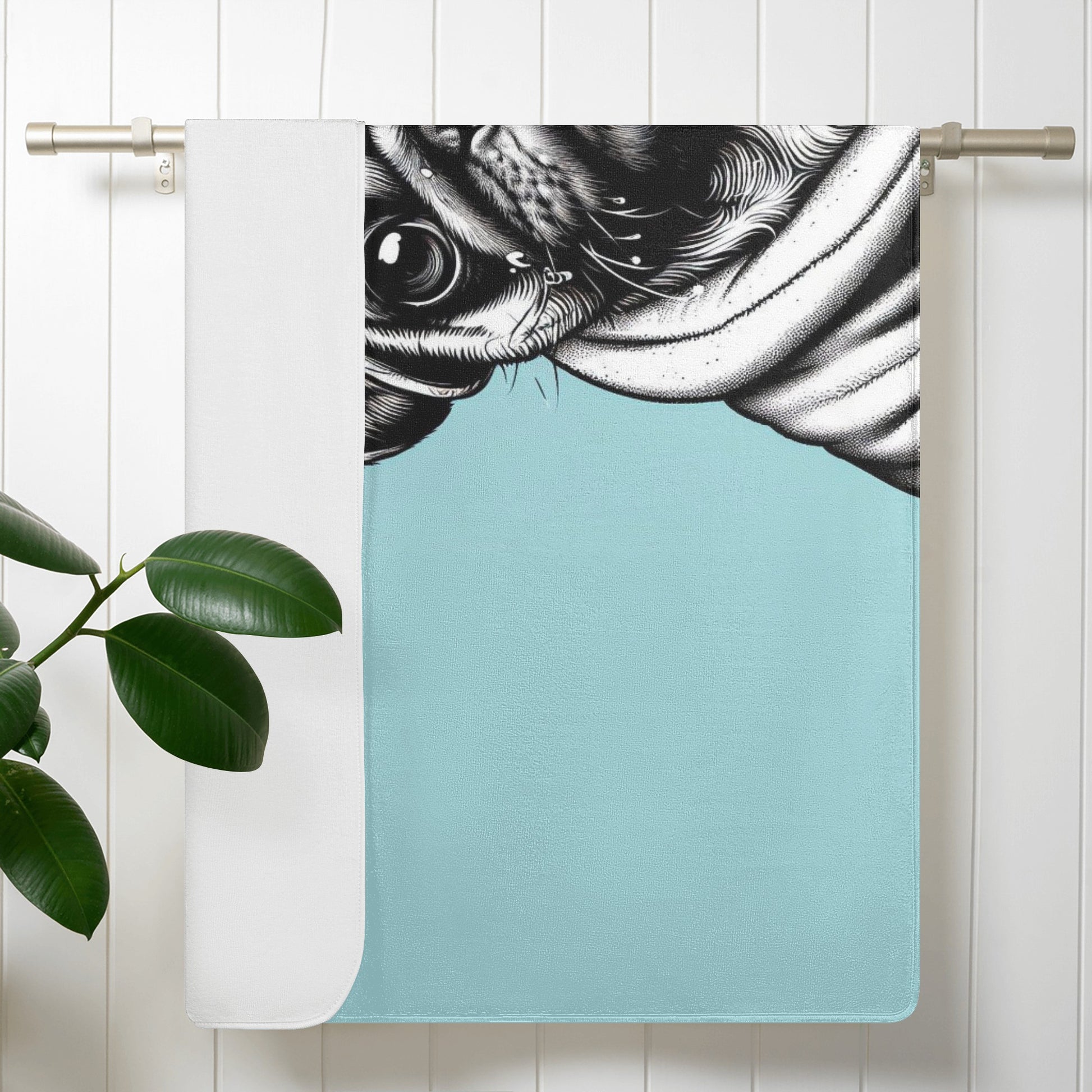Do you love pugs and unicorns? Then this bath towel is perfect for you! This towel features a cute and colorful scene of a pug dog with a unicorn in a bathtub, surrounded by hearts and bubbles. It will brighten up your bathroom and make your bathing time more fun and relaxing.