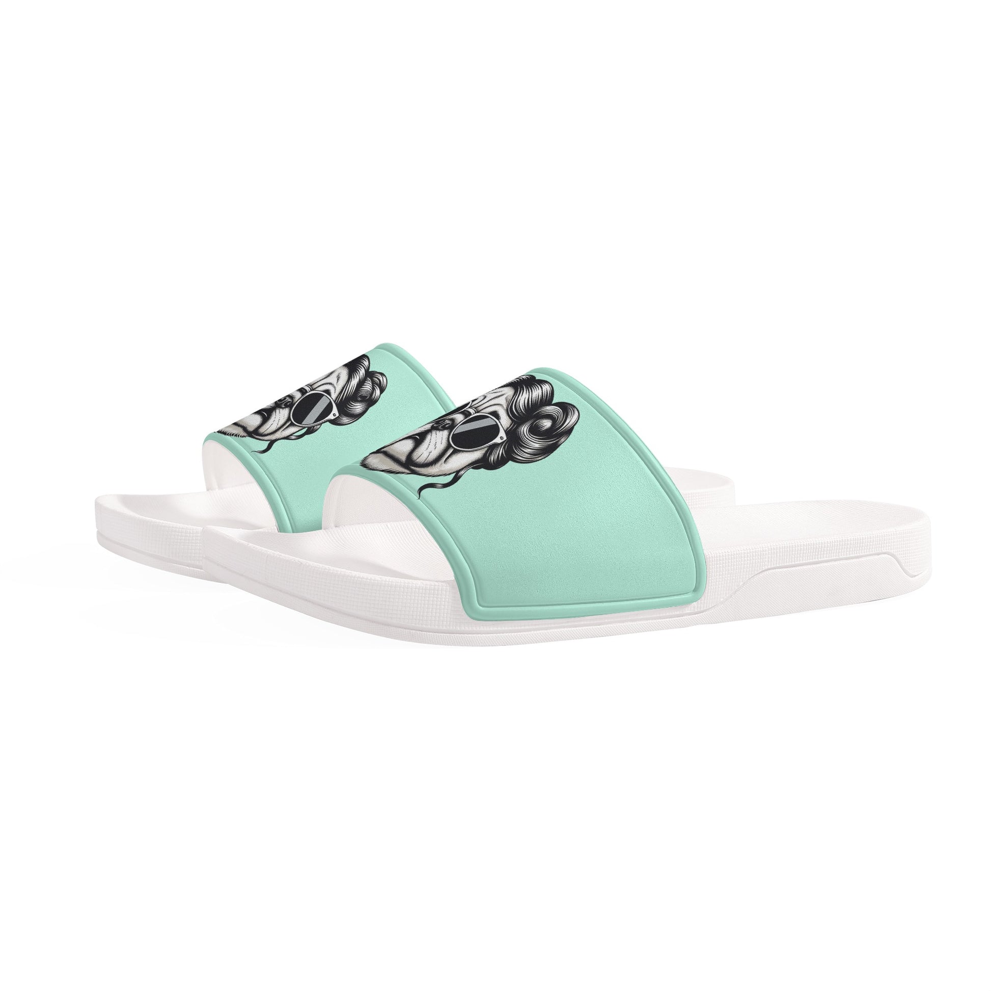 Unleash your love for pugs with our custom printed slide sandals, featuring an open toe and flat heel style for ultimate comfort. Here's what makes them special: