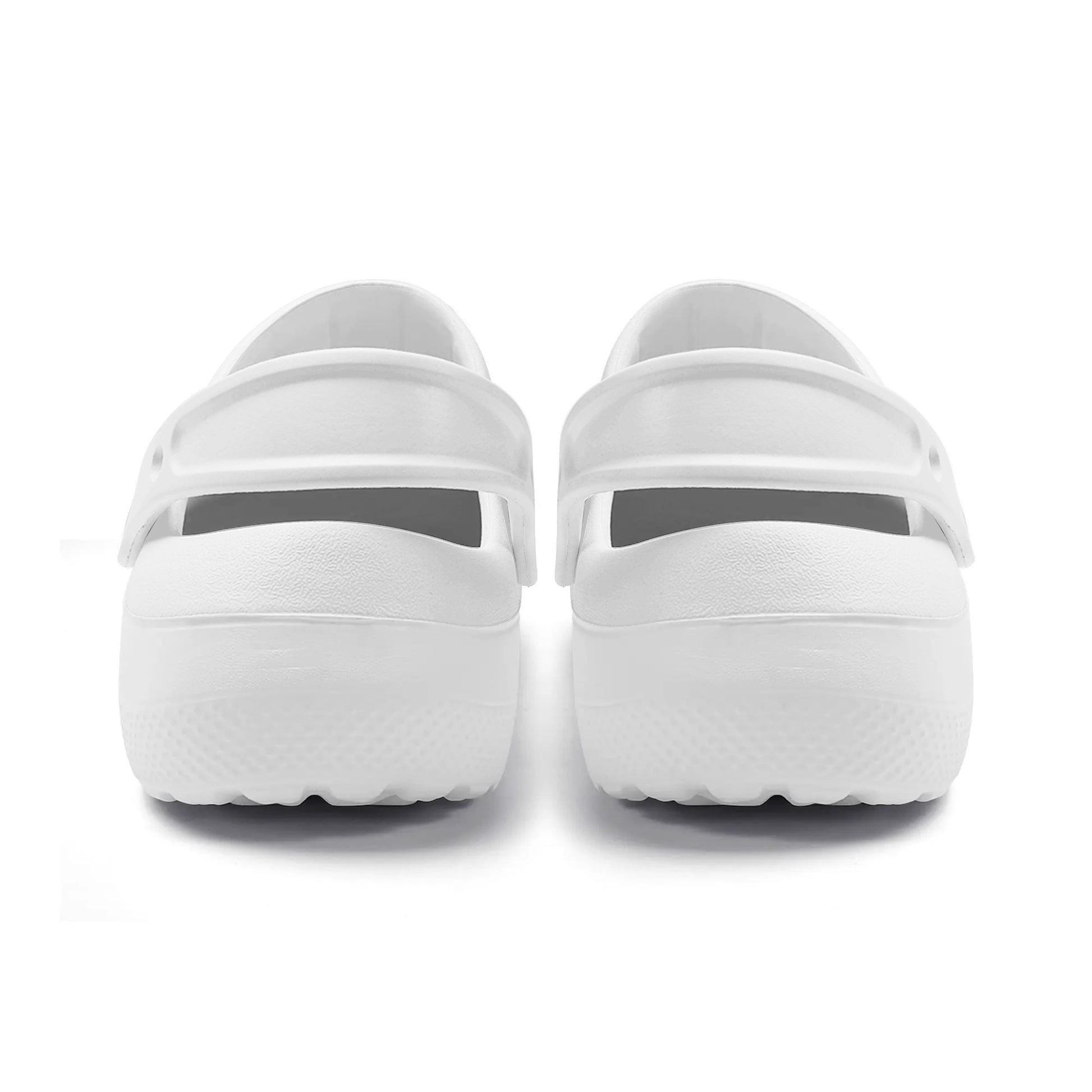 - Crafted from high-quality EVA material, these clogs promise both flexibility and durability, ensuring they withstand the demands of your busy day. The pivoting heel strap offers a snug fit and makes slipping them on and off a breeze, perfect for those always on the go.