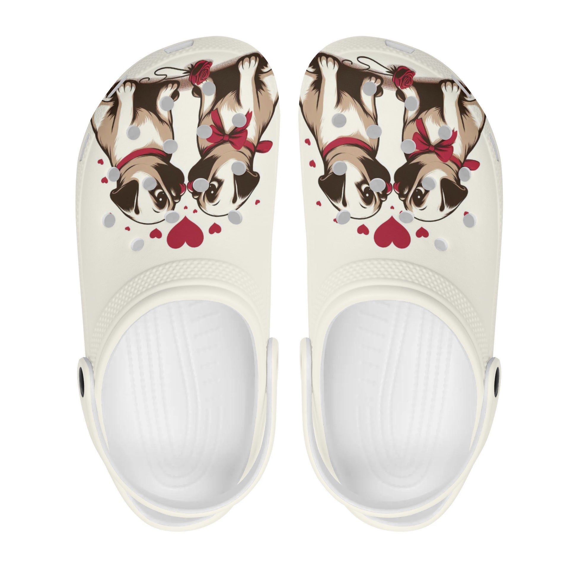 • Charming Design: Adorned with a custom all-over pug print, these clogs feature a rounded style and vent holes, blending fun and breathability in a design that celebrates your love for pugs.