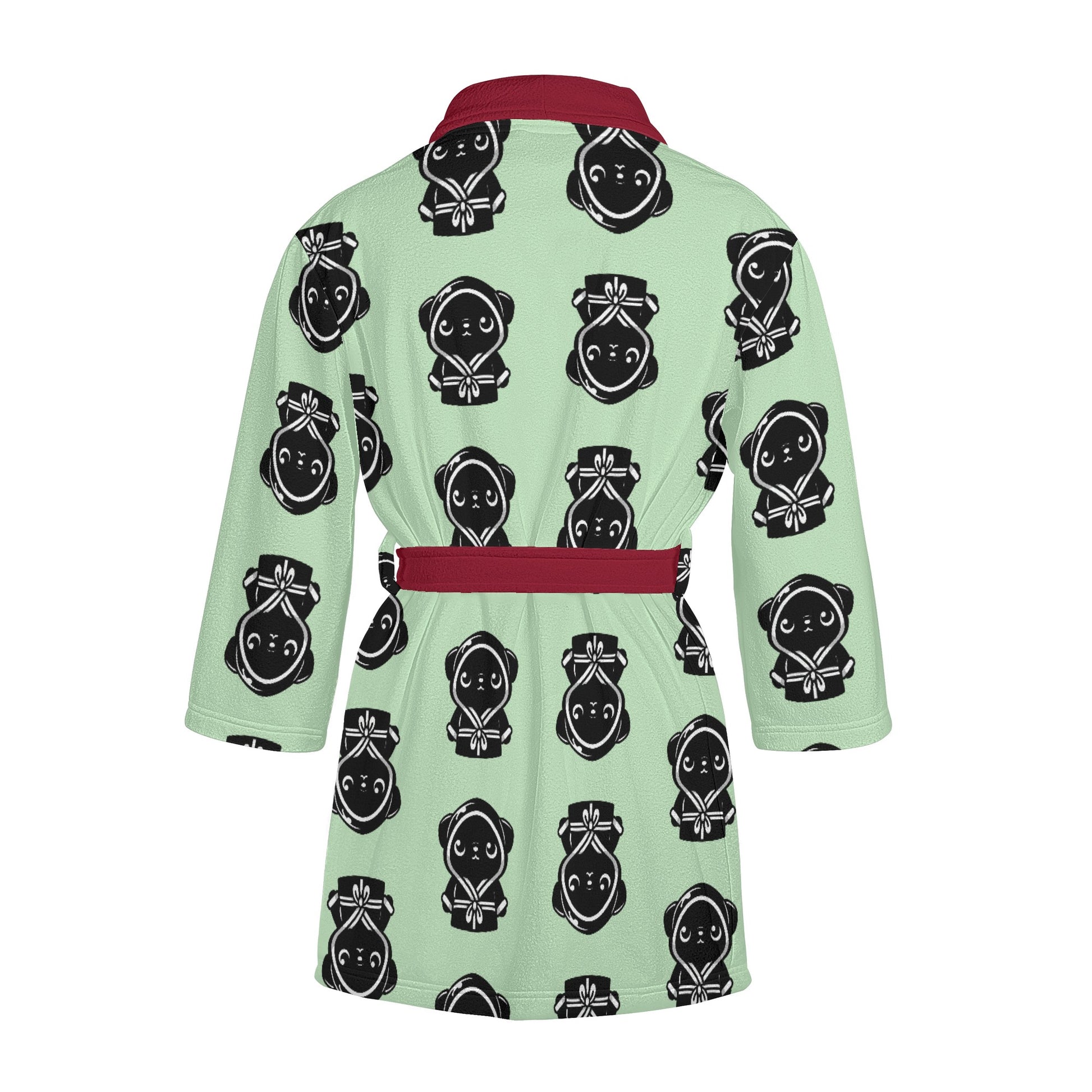 Wrap yourself in ultimate comfort and showcase your love for pugs with our Pug Lover's Women's Bathrobe. Crafted from a lightweight polyester blend fabric, this bathrobe offers a soft and luxurious feel, perfect for lounging at home.