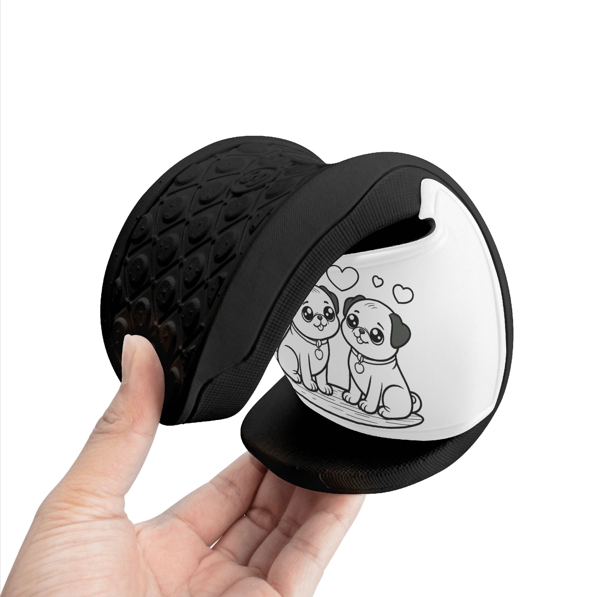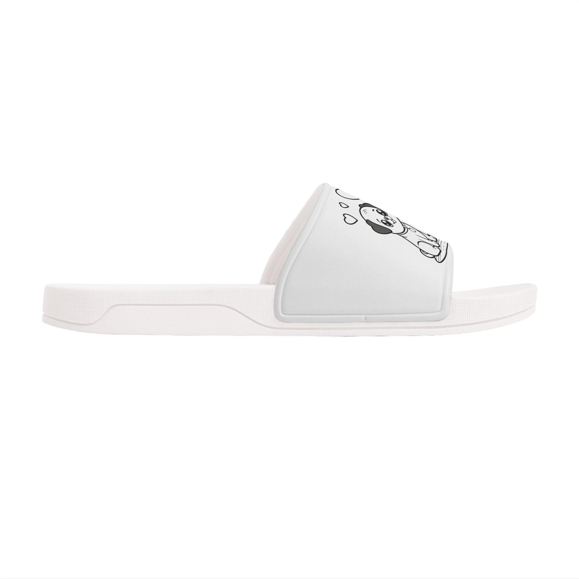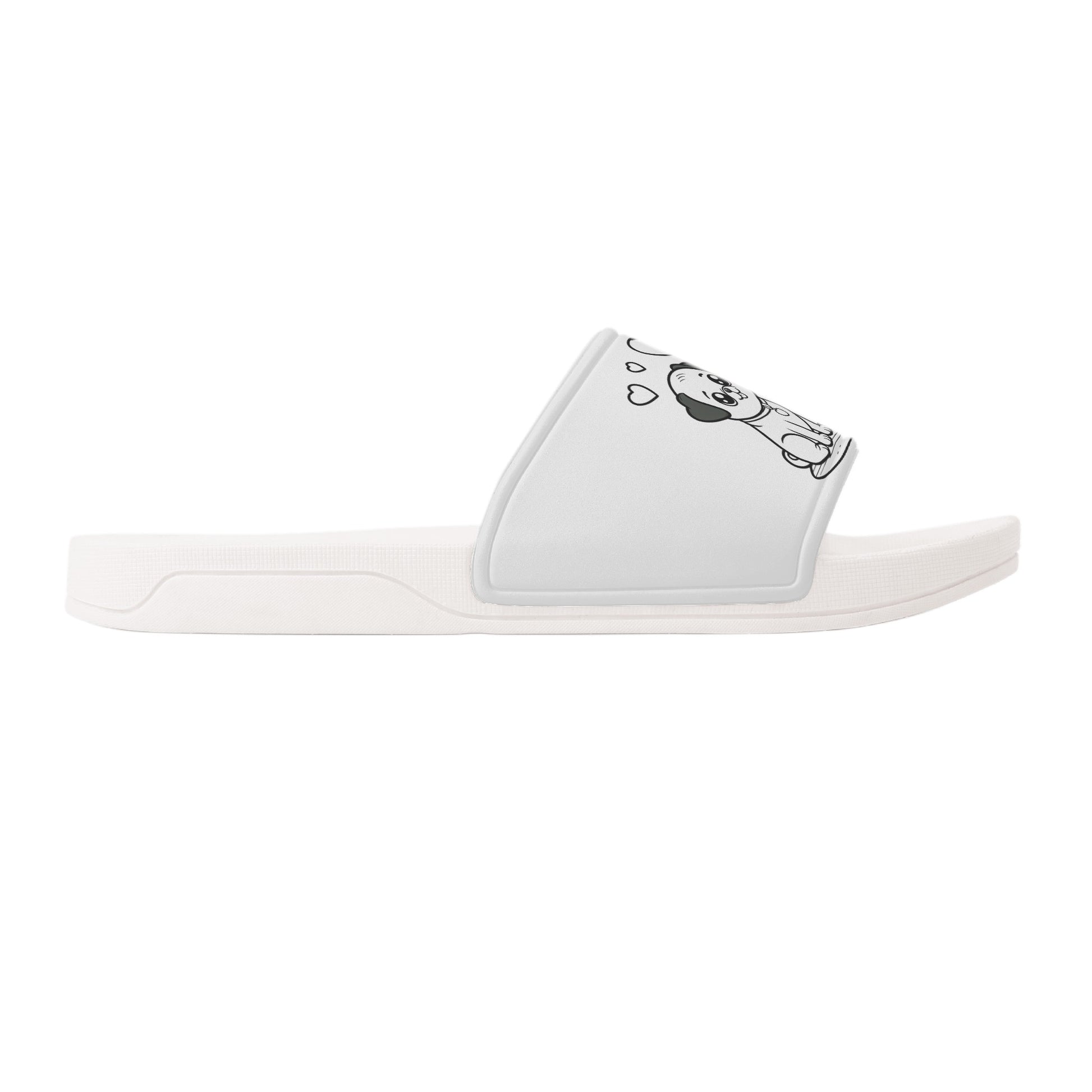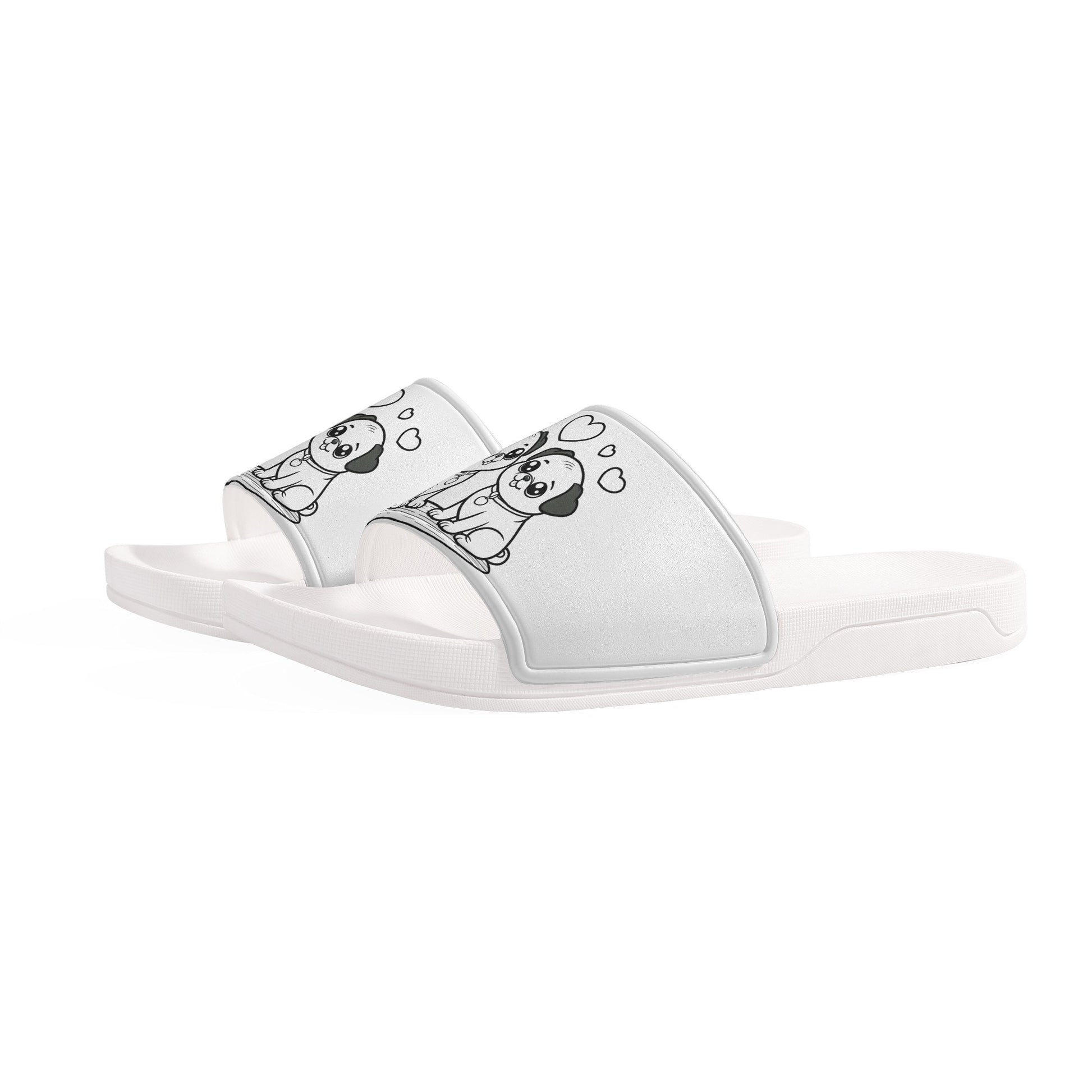 Unleash your love for pugs with our custom printed slide sandals, featuring an open toe and flat heel style for ultimate comfort. Here's what makes them special: