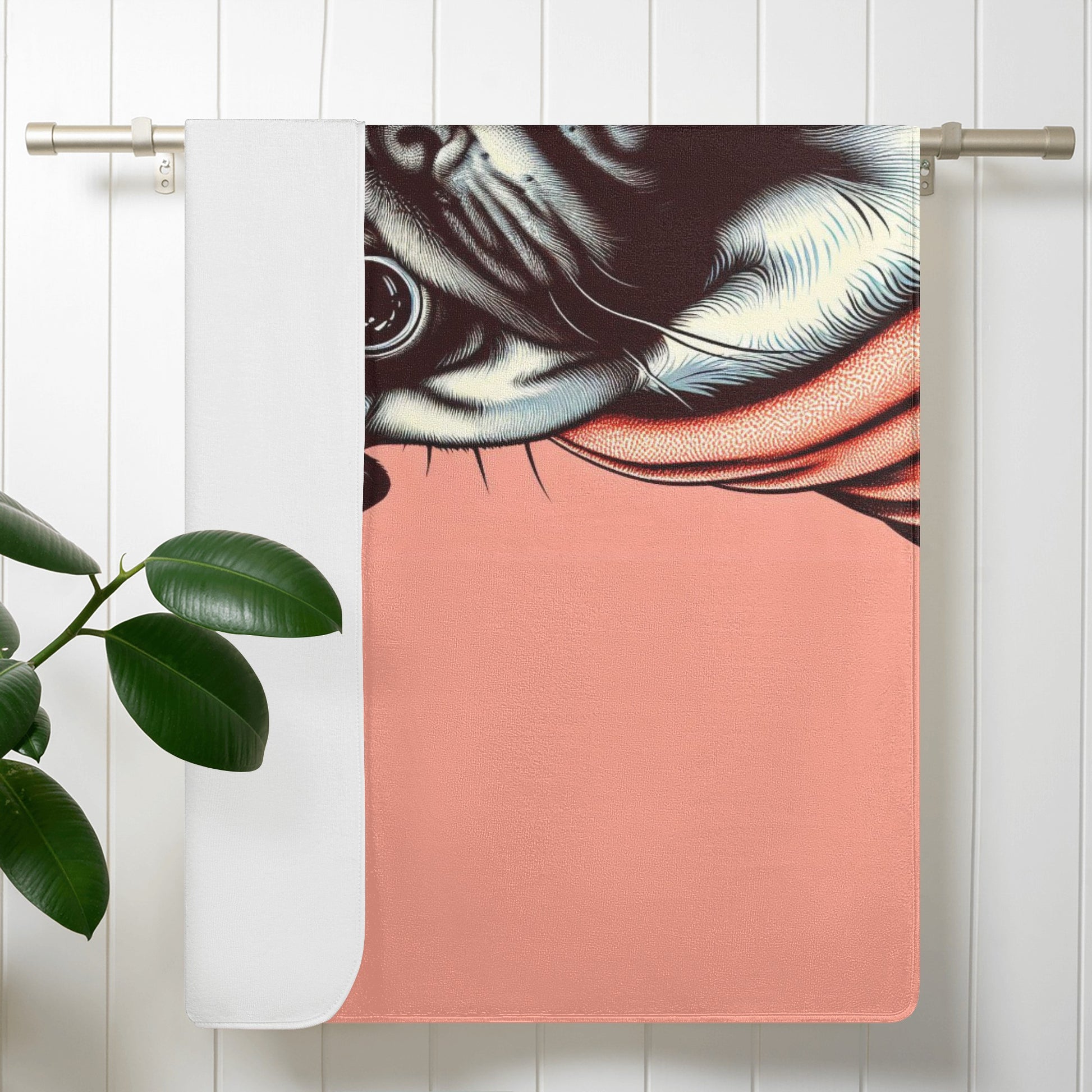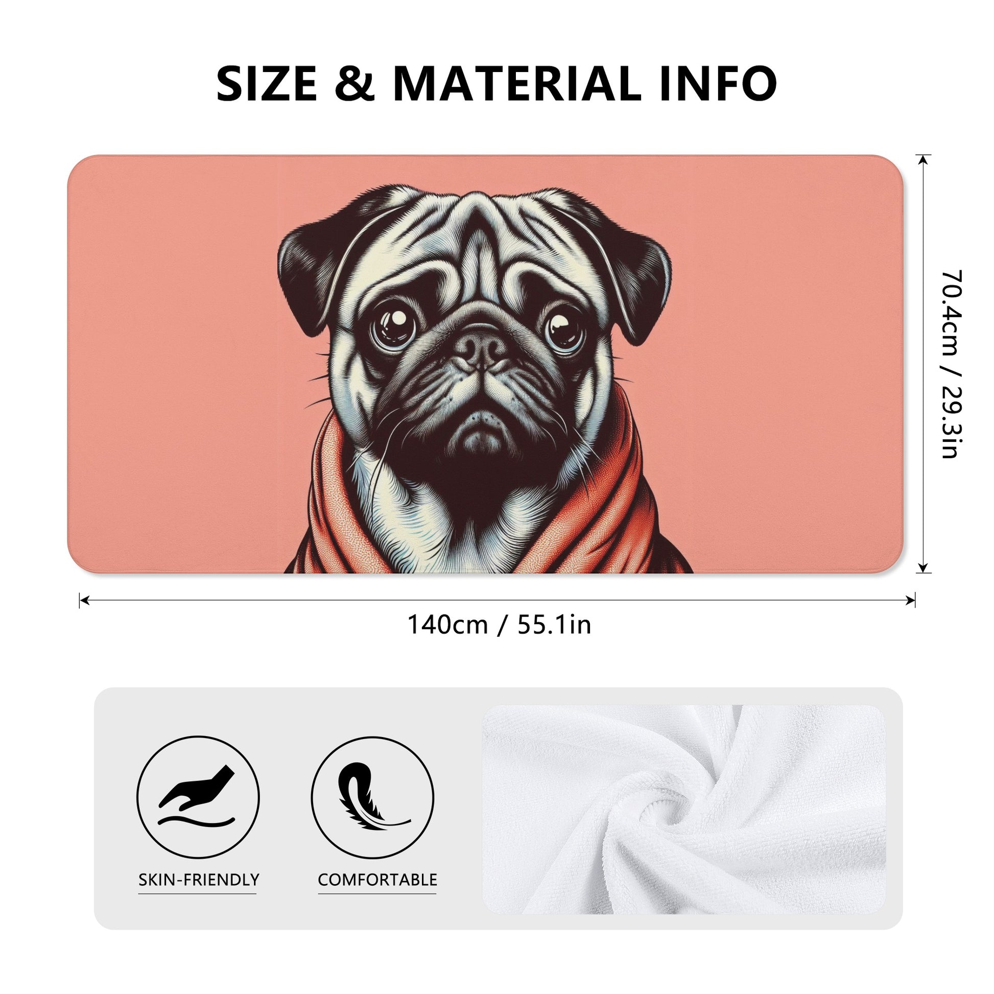 Do you love pugs and unicorns? Then this bath towel is perfect for you! This towel features a cute and colorful scene of a pug dog with a unicorn in a bathtub, surrounded by hearts and bubbles. It will brighten up your bathroom and make your bathing time more fun and relaxing.