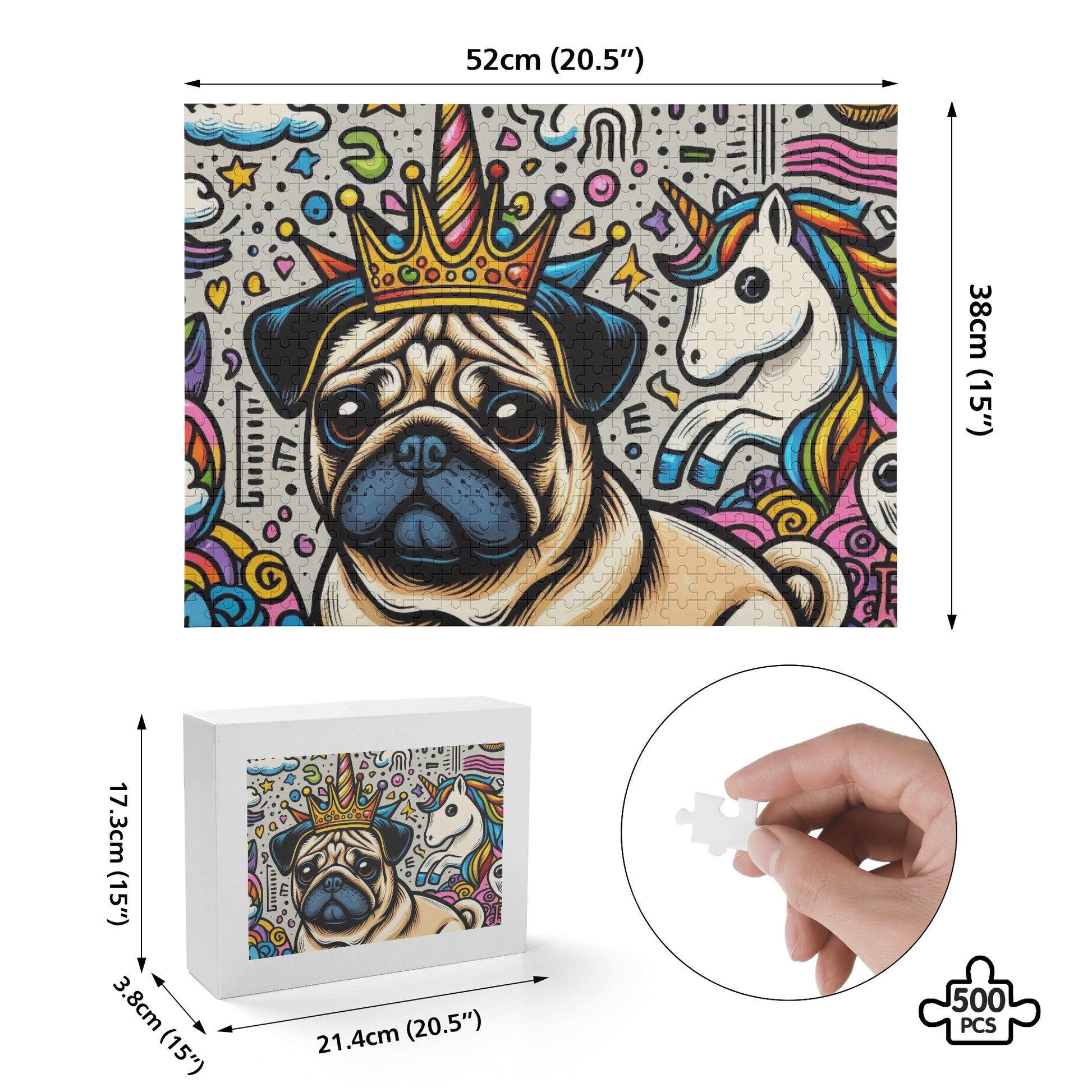 Introducing our Pug Lover's Delight: The 500-Piece Wooden Puzzle!
