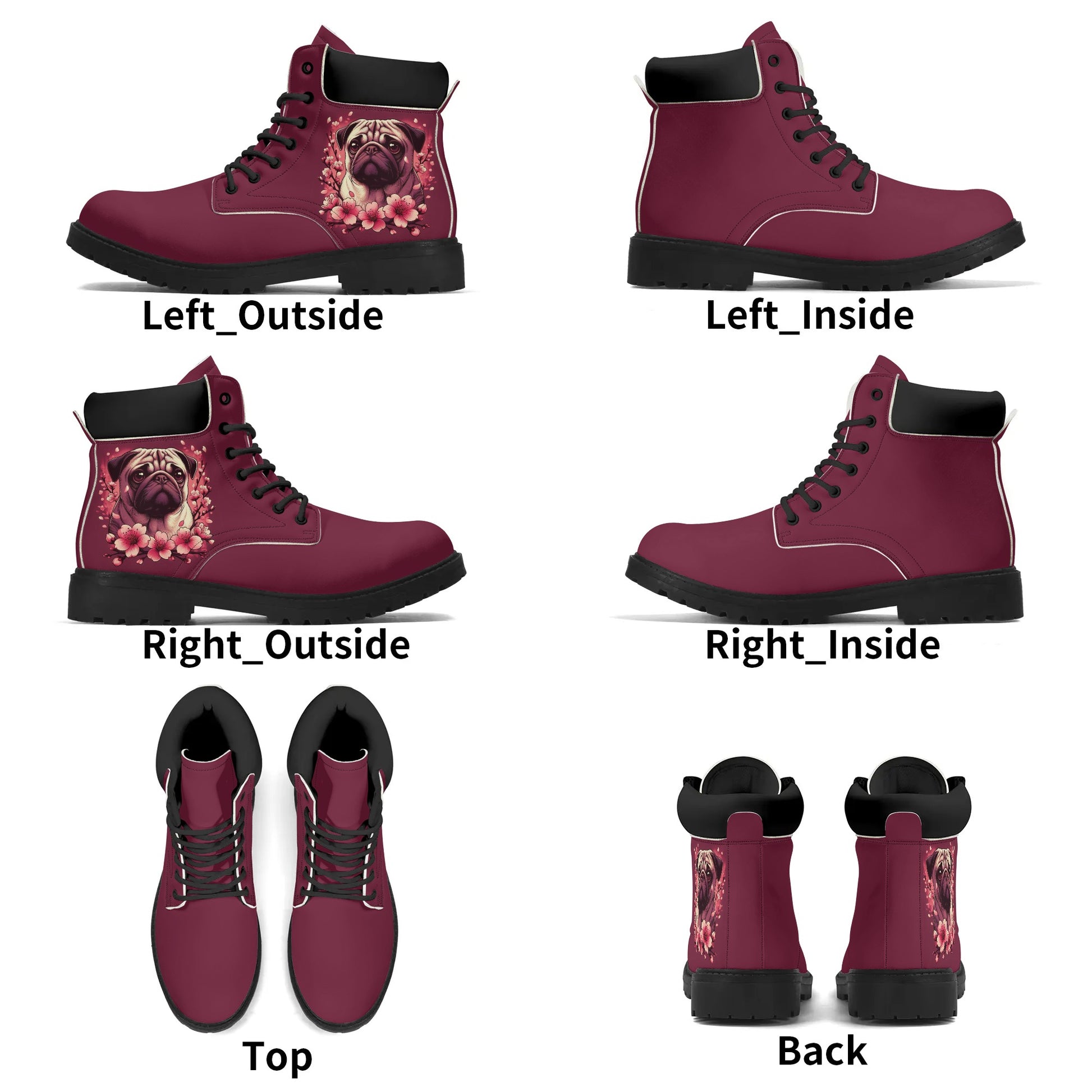 • Rugged Details: Custom-developed reinforced eyelets and polyester laces enhance the rugged aesthetic, making these boots a perfect match for the pug lover's adventurous spirit.