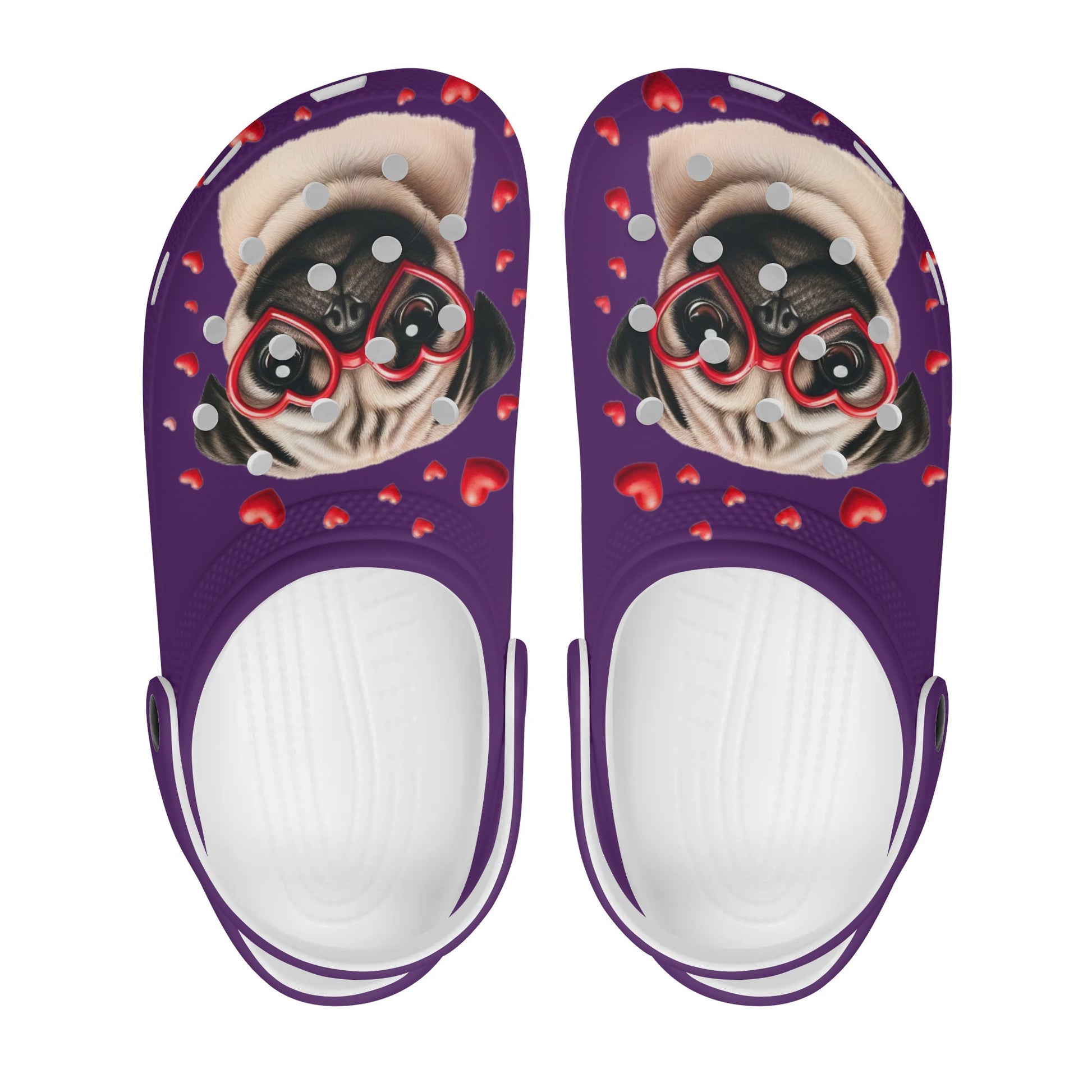 Custom Pug Print Clogs! Tailored for the pug aficionado, these clogs are a symphony of style and practicality. Here's what makes them special: