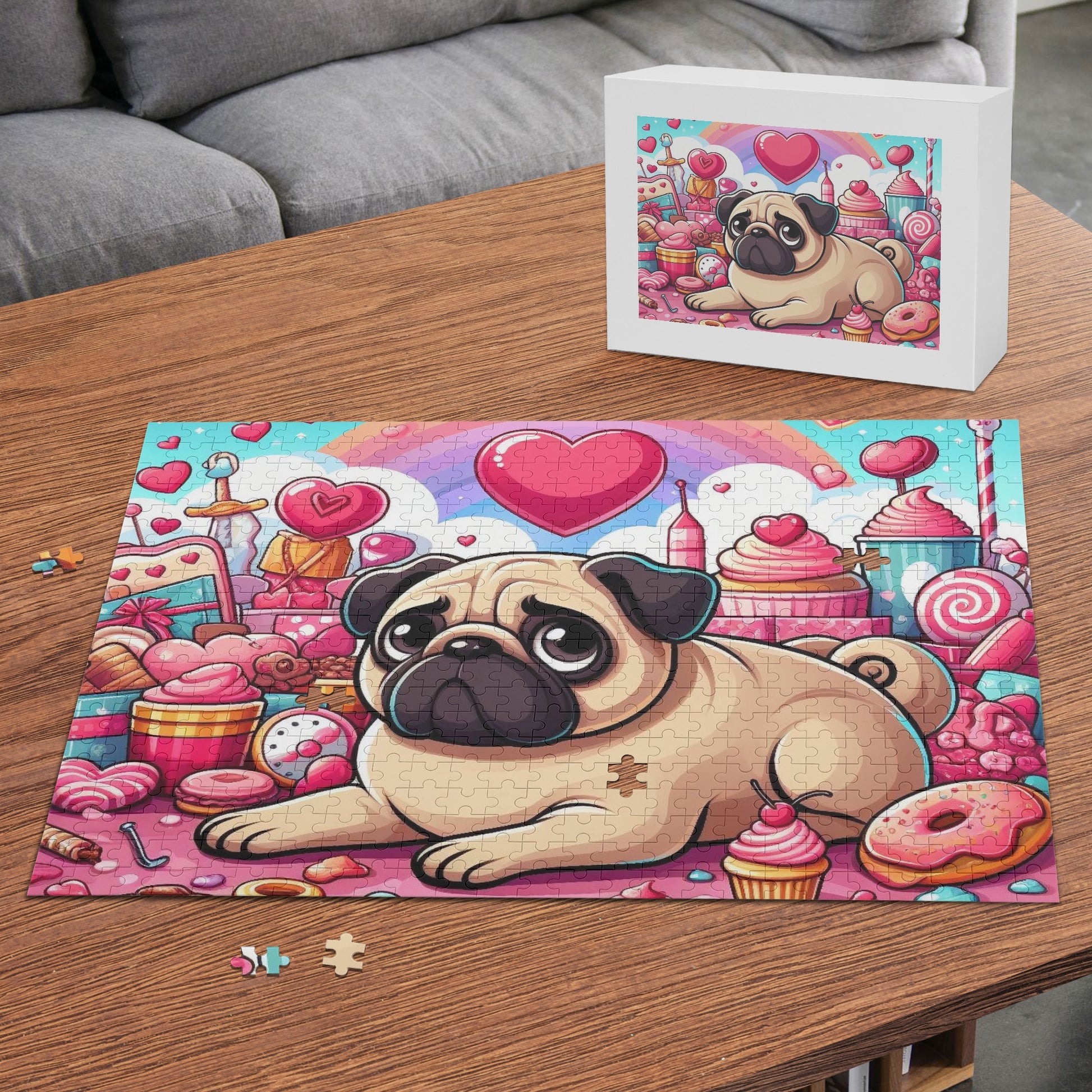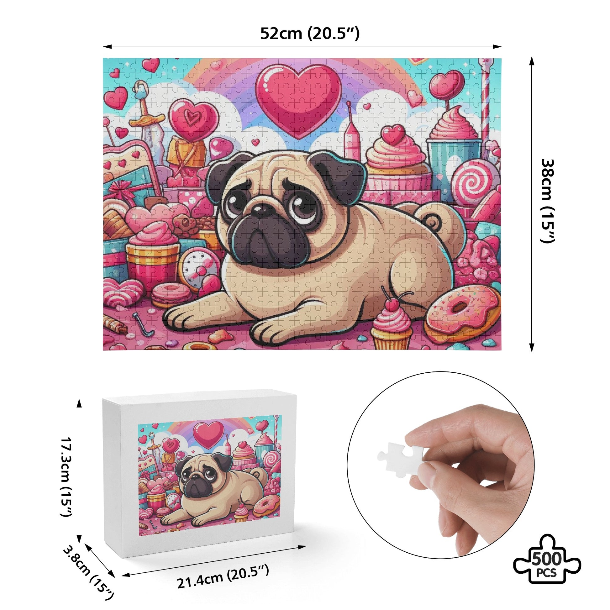 Introducing our Pug Lover's Delight: The 500-Piece Wooden Puzzle!