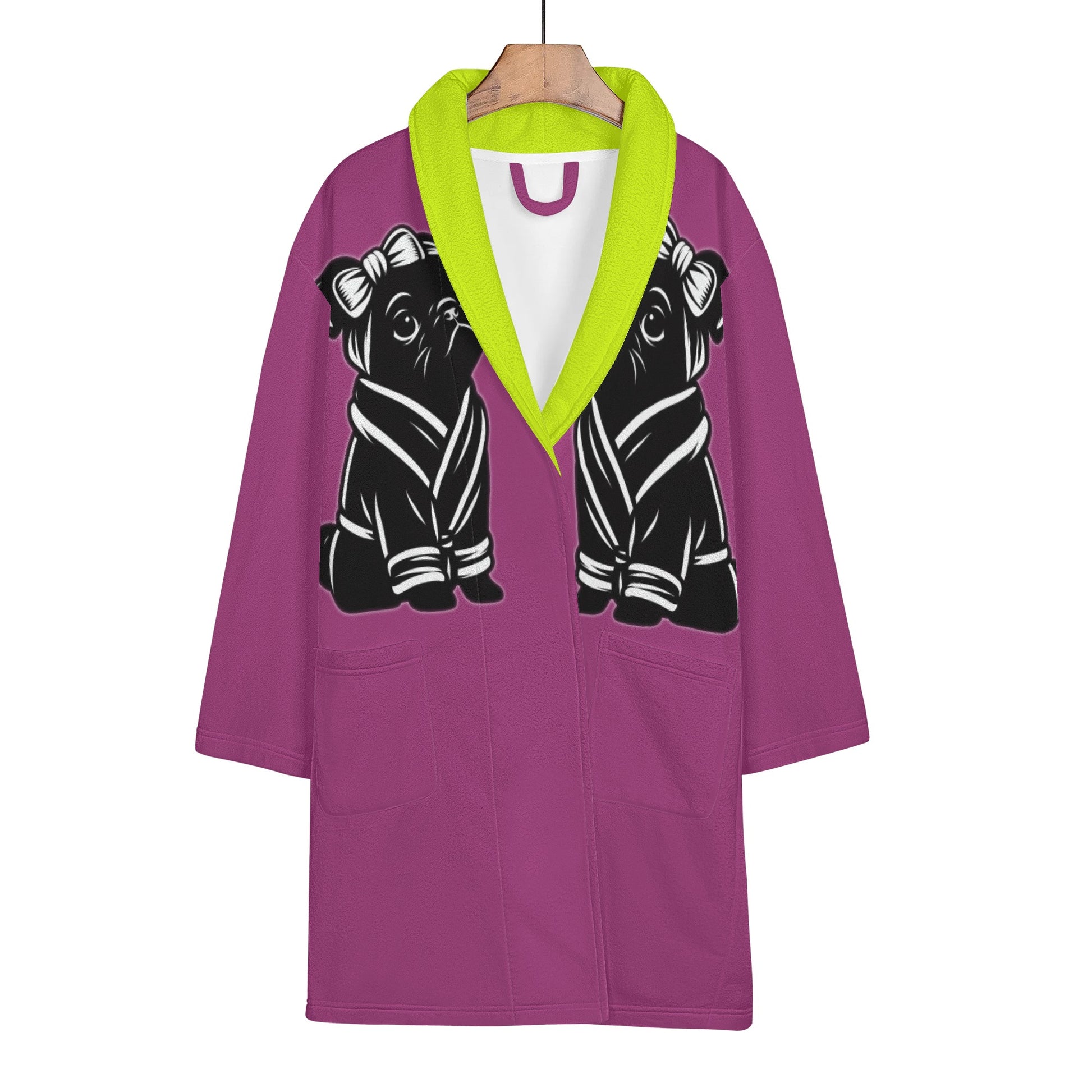 Wrap yourself in ultimate comfort and showcase your love for pugs with our Pug Lover's Women's Bathrobe. Crafted from a lightweight polyester blend fabric, this bathrobe offers a soft and luxurious feel, perfect for lounging at home.