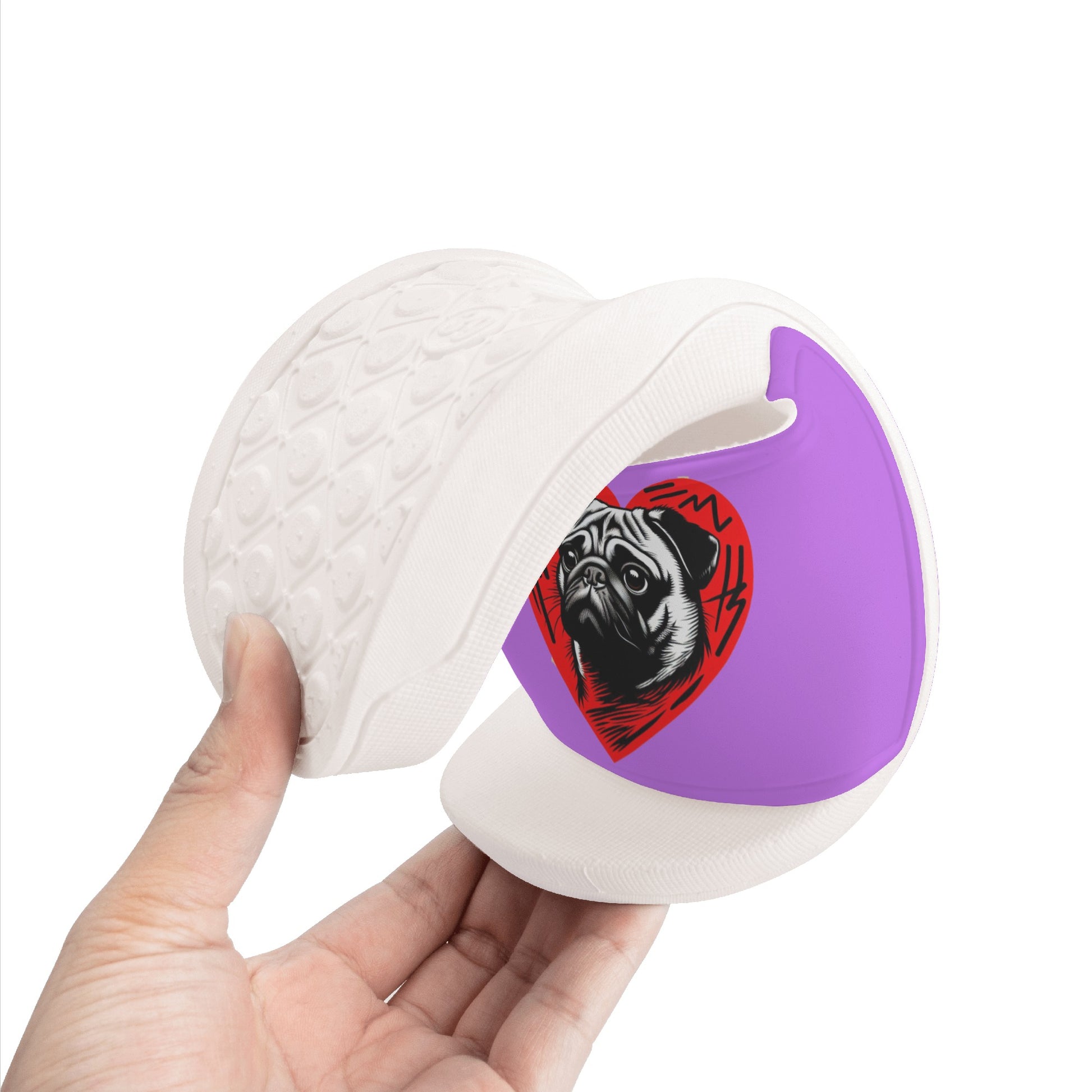 Unleash your love for pugs with our custom printed slide sandals, featuring an open toe and flat heel style for ultimate comfort. Here's what makes them special: