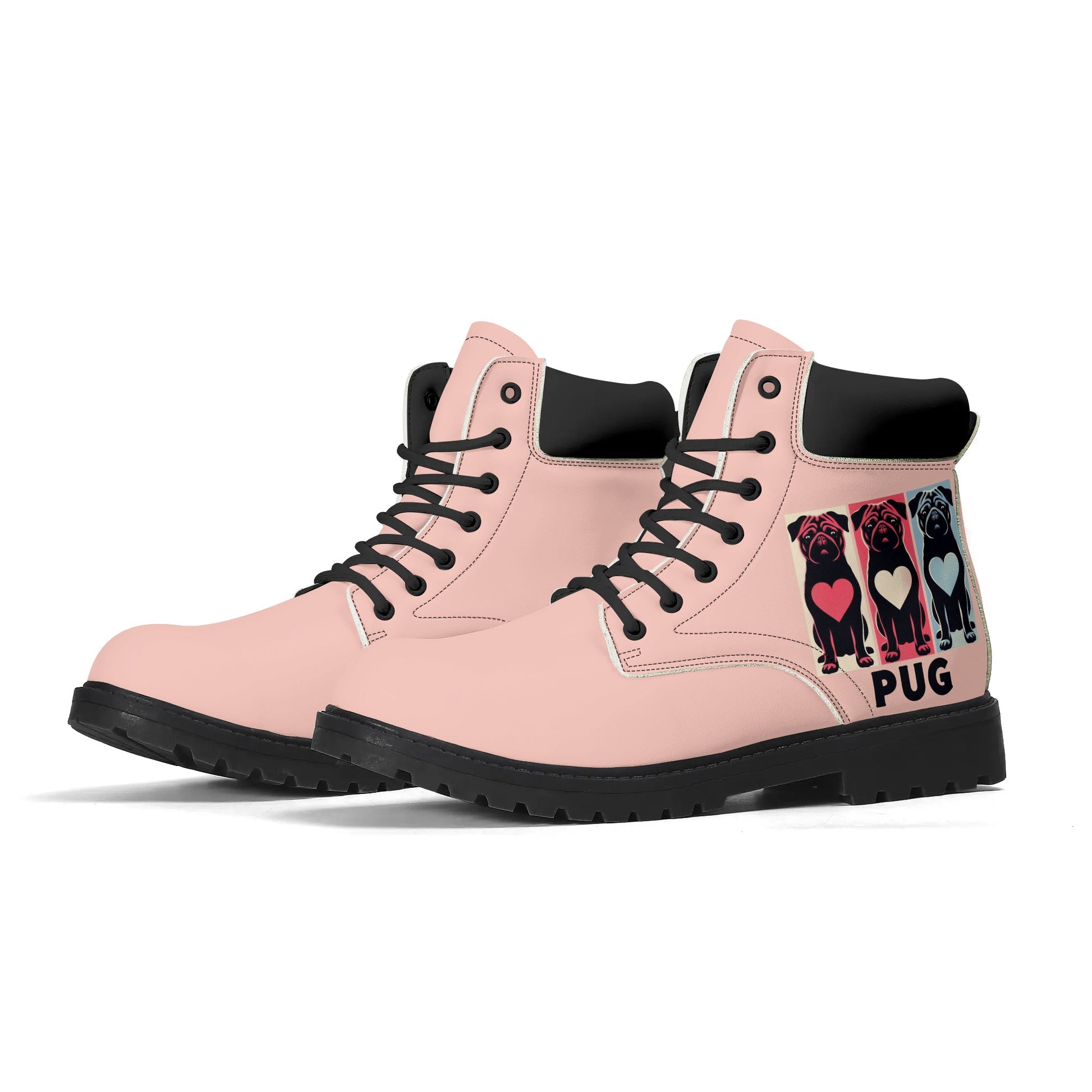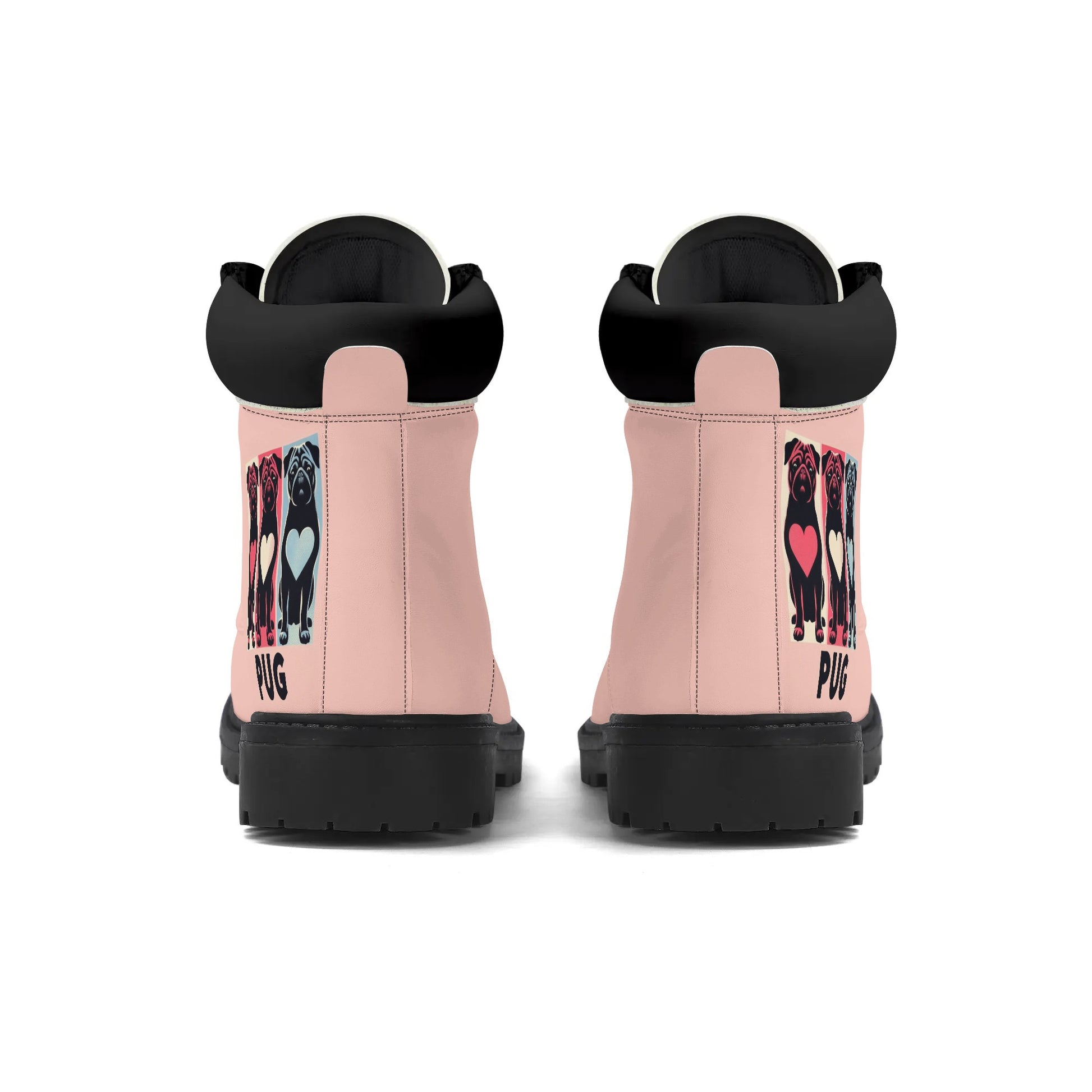 • Rugged Details: Custom-developed reinforced eyelets and polyester laces enhance the rugged aesthetic, making these boots a perfect match for the pug lover's adventurous spirit.