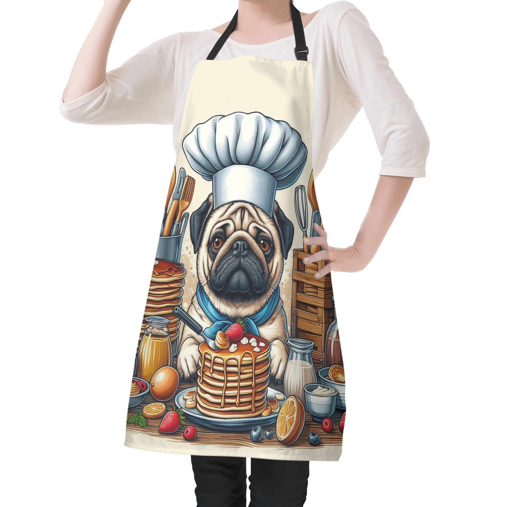 Are you a pug lover who enjoys cooking or painting? Then you will love this apron featuring a cute pug design. This apron is made of high-quality polyester fabric that is durable and easy to clean. It has an adjustable neck strap and long waist straps to fit your body comfortably. Whether you are in the kitchen or in the studio, this apron will protect your clothes from spills and stains. Plus, it will show off your love for pugs in a fun and stylish way. To care for this apron, simply hand wash or machine wash and dry. Order yours today and get ready to unleash your creativity with your pug apron. 🐶