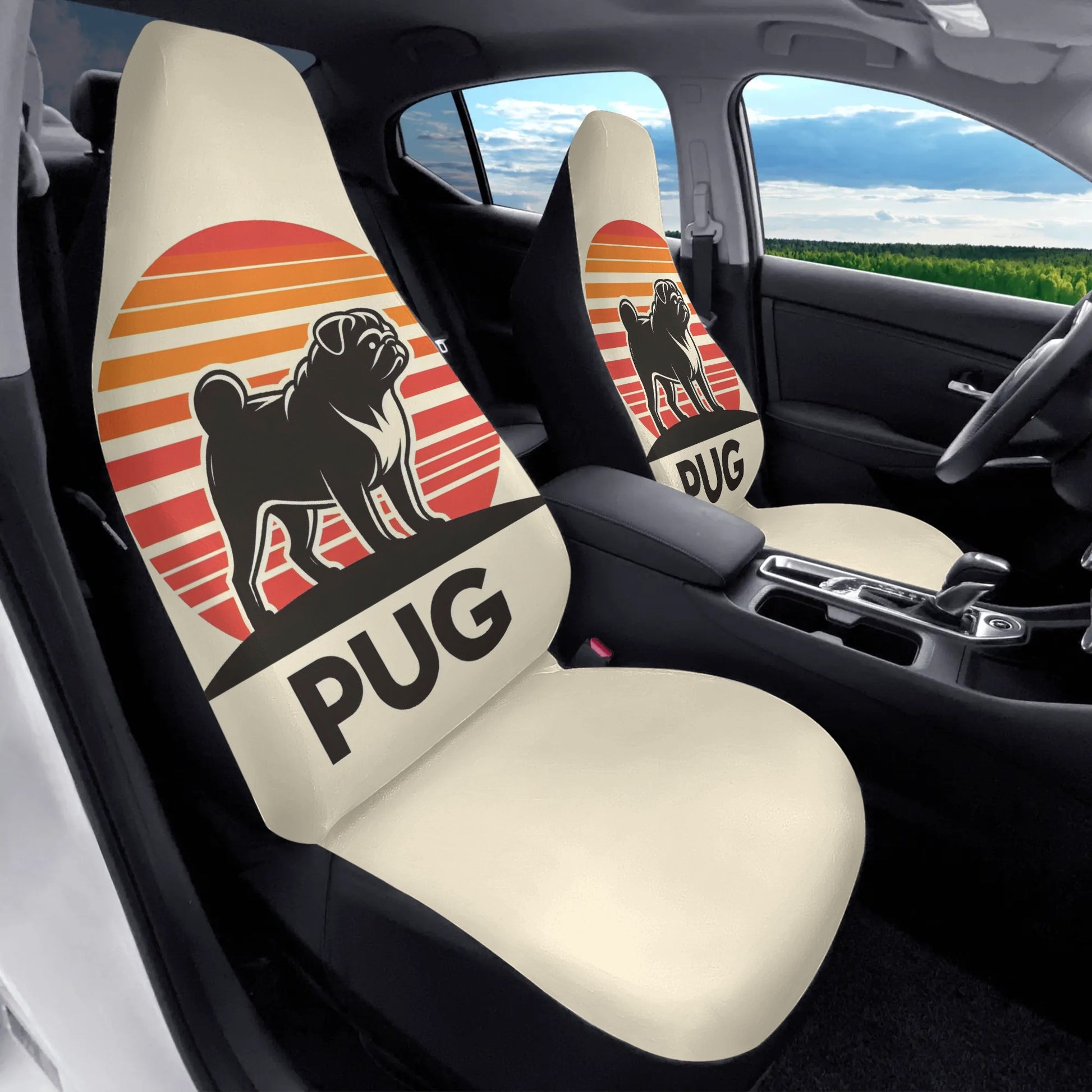 • Protection with Personality: Our 2-piece car seat cover set not only adds a vibrant touch to your car's interior but also protects your seats from spills, stains, and the wear and tear of daily adventures with your pug.