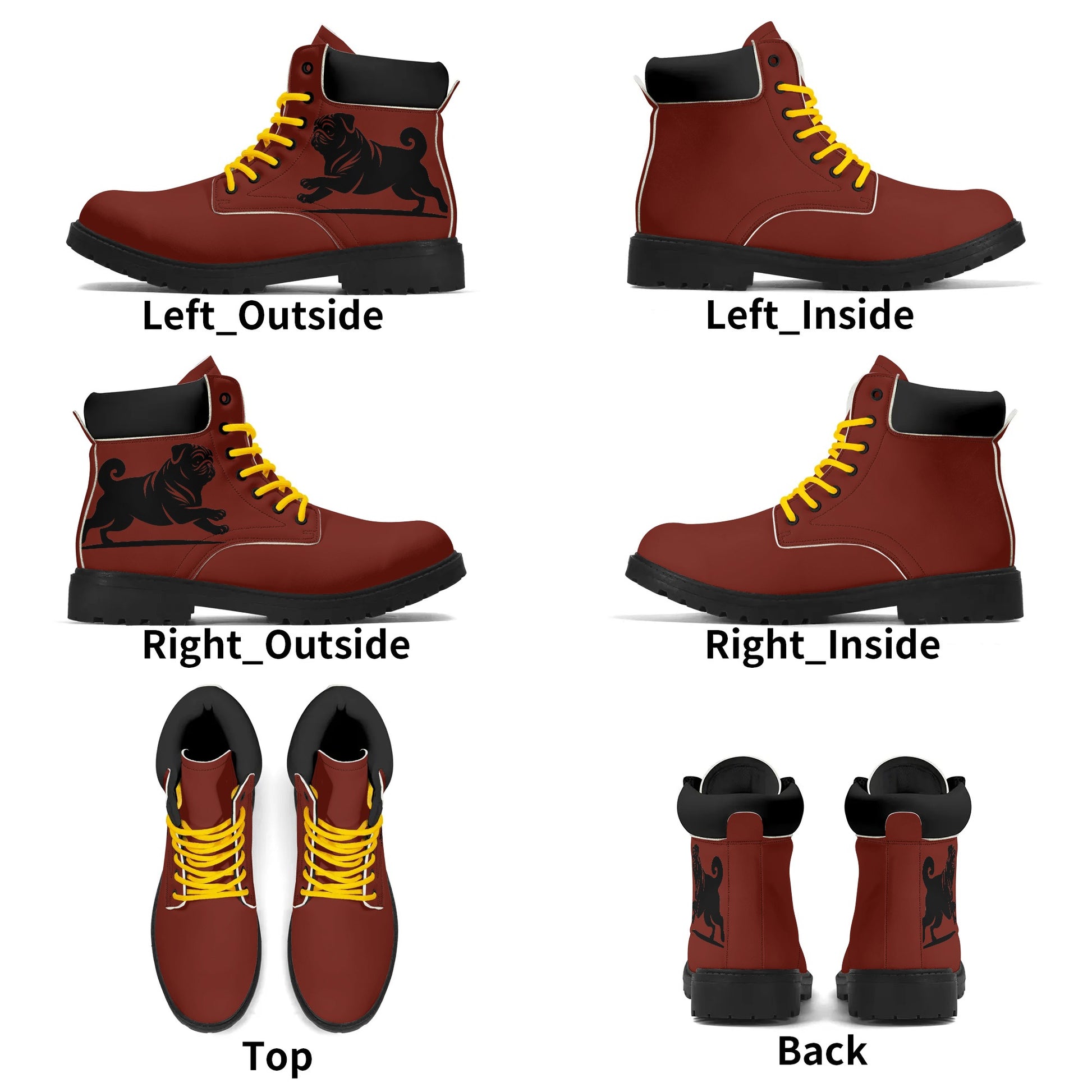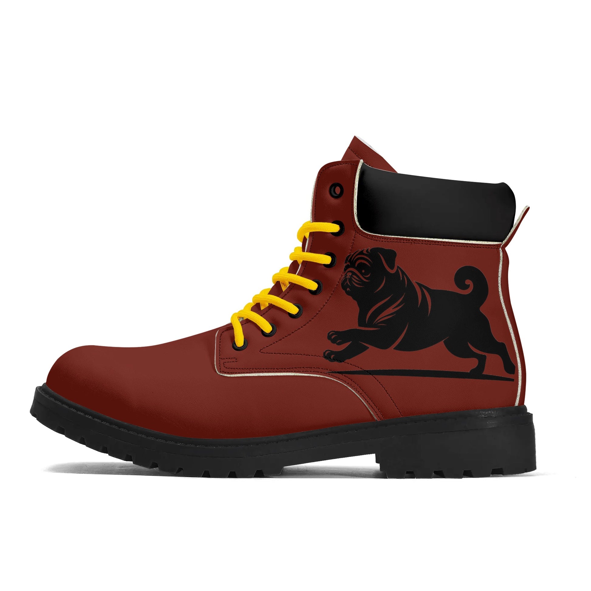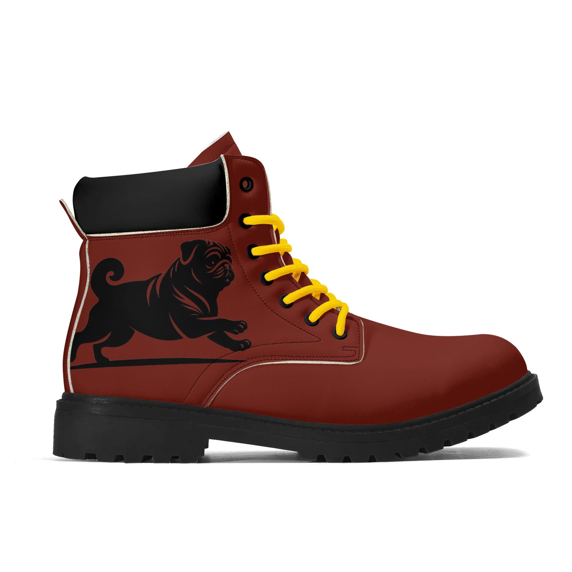 • Rugged Details: Custom-developed reinforced eyelets and polyester laces enhance the rugged aesthetic, making these boots a perfect match for the pug lover's adventurous spirit.