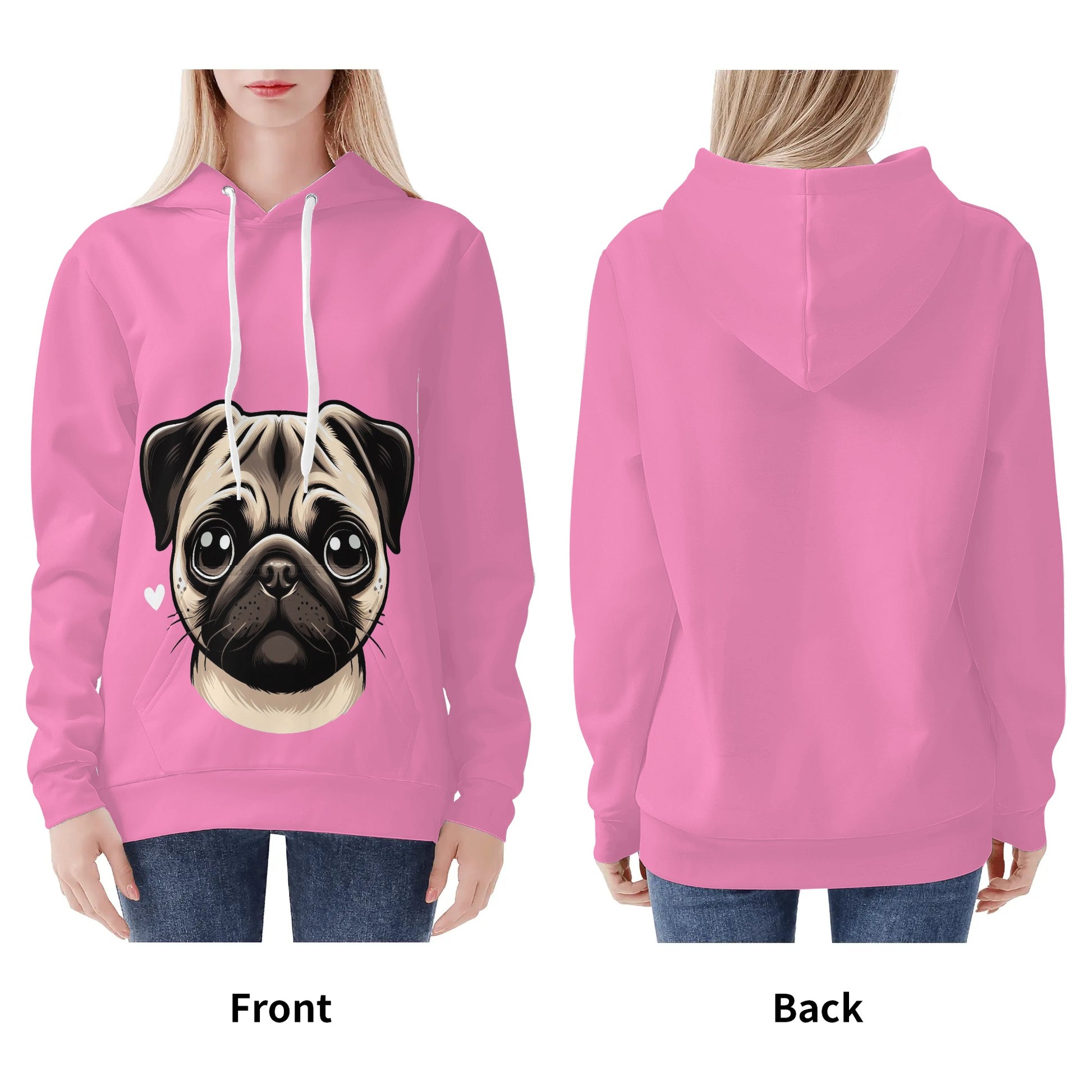 - Care Instructions: To keep your Pug Love Hoodie in pristine condition, we recommend hand washing or machine washing in cold water. Please avoid bleaching, tumble dry on low, and there’s no need to iron or dry clean.