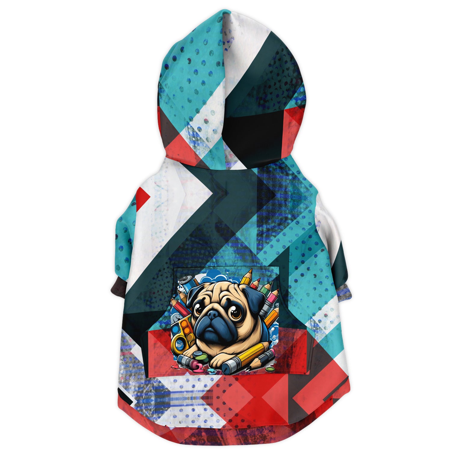 Introducing our Pug Zip-Up Hoodie – the perfect blend of style, comfort, and functionality for your furry friend's adventures! Crafted with a unique all-over Pug print, this hoodie allows your dog to express their adventurous spirit while ensuring maximum comfort and mobility.