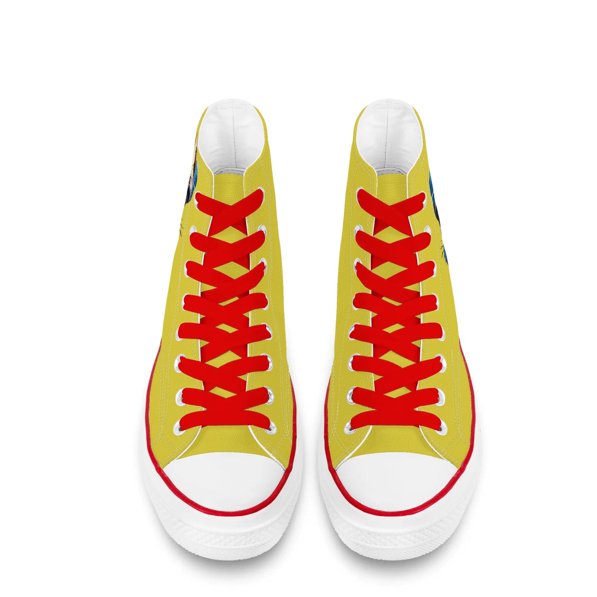 - Custom Design: Featuring an all-over print that’s sure to turn heads, these shoes come with 8 eyelets lace-up closure and a classic white high top construction, ensuring a snug and secure fit that’s perfect for any adventure.
