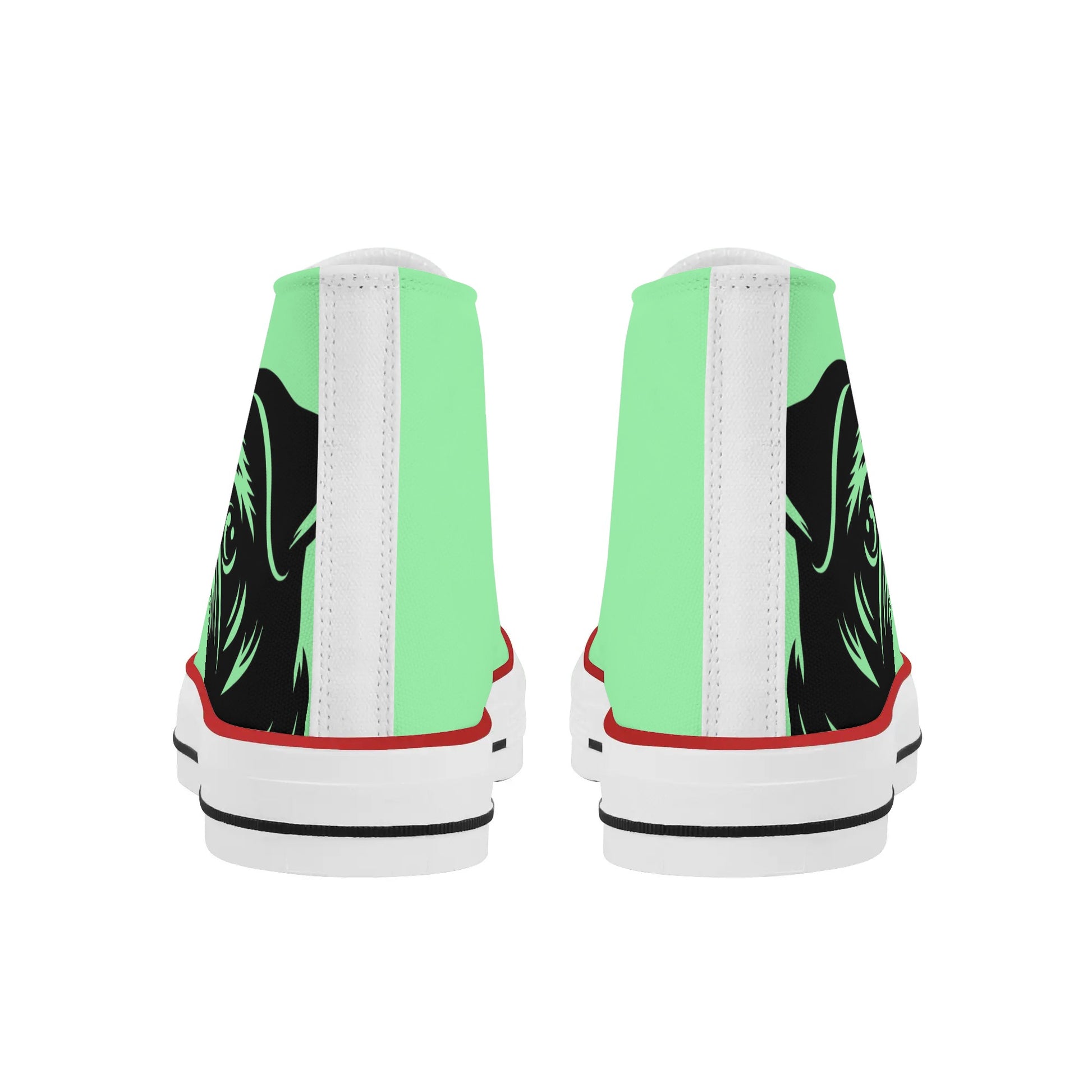 • Custom Design: Featuring an all-over print that’s sure to turn heads, these shoes come with 8 eyelets lace-up closure and a classic white high top construction, ensuring a snug and secure fit that’s perfect for any adventure.