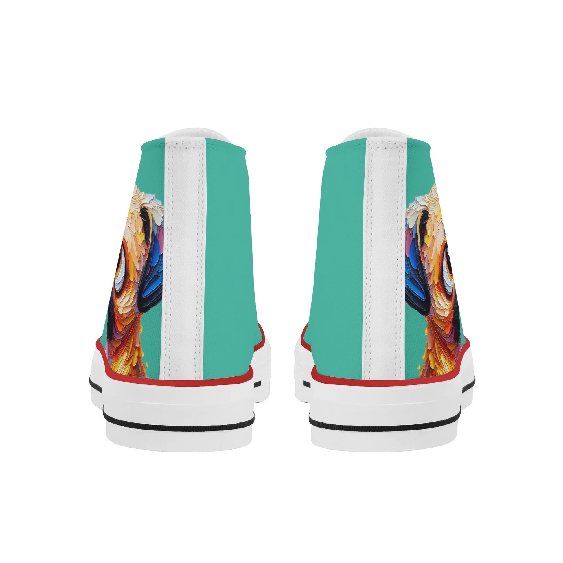 - Custom Design: Featuring an all-over print that’s sure to turn heads, these shoes come with 8 eyelets lace-up closure and a classic white high top construction, ensuring a snug and secure fit that’s perfect for any adventure.