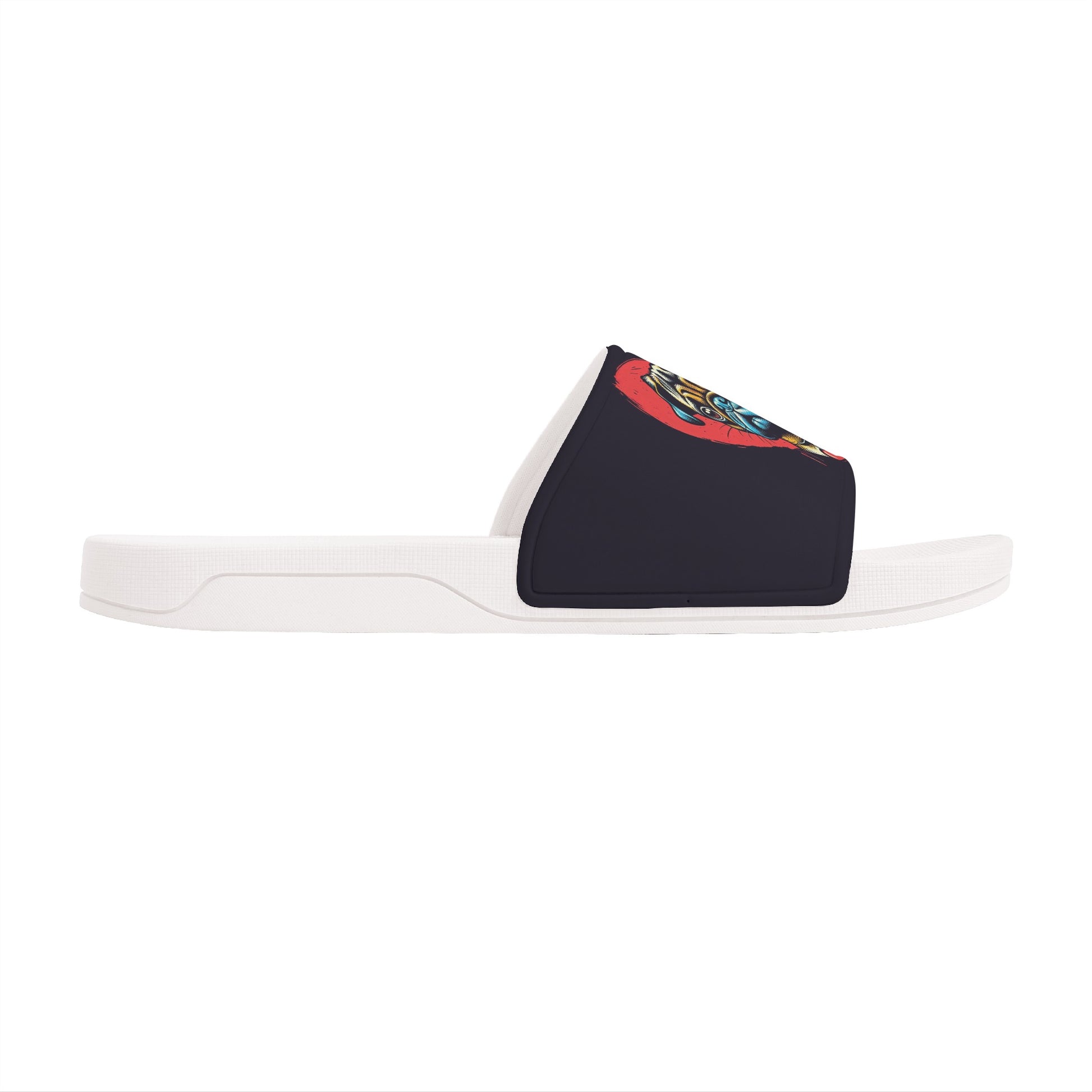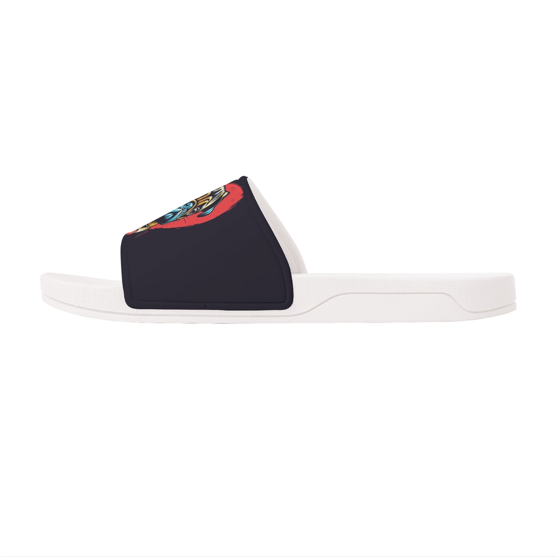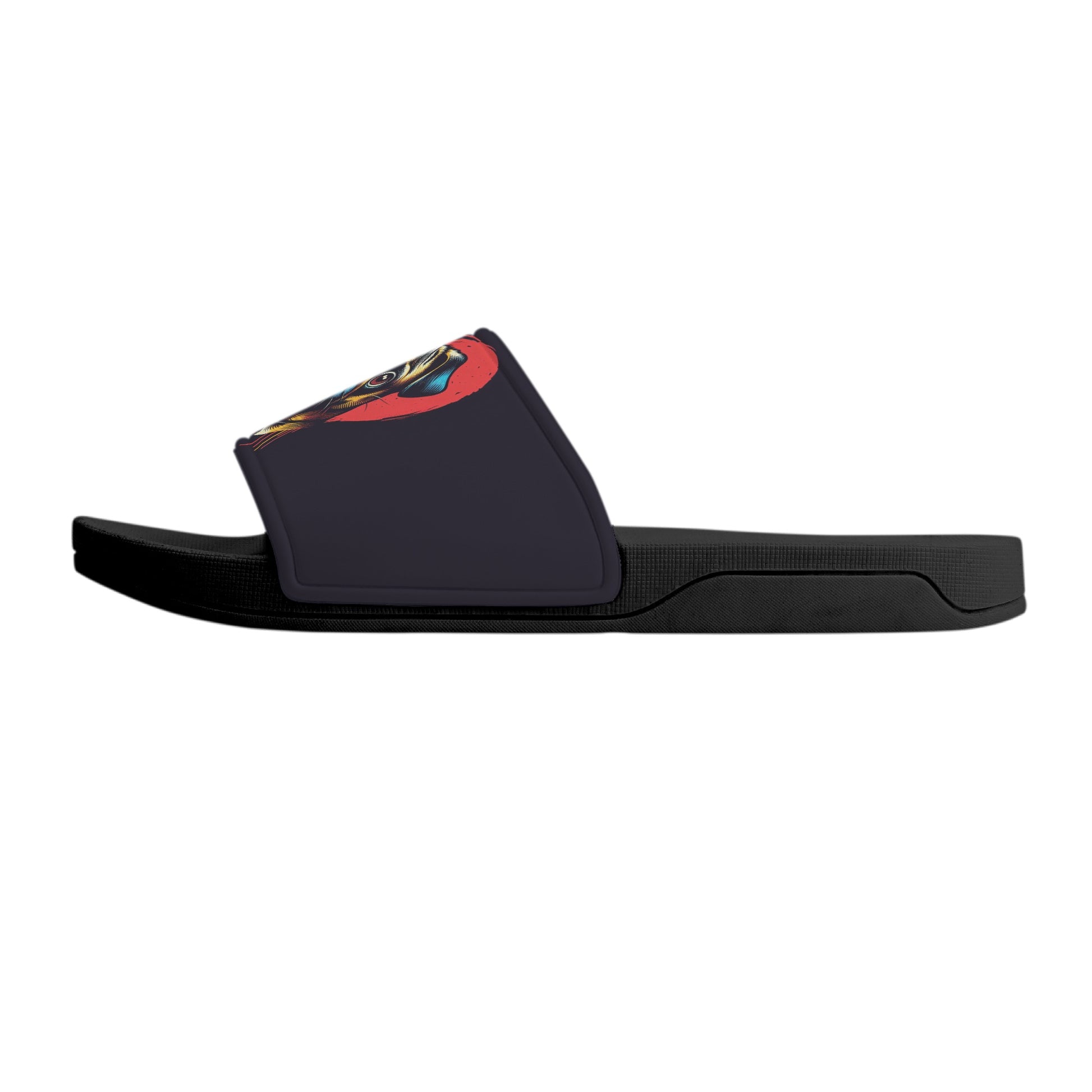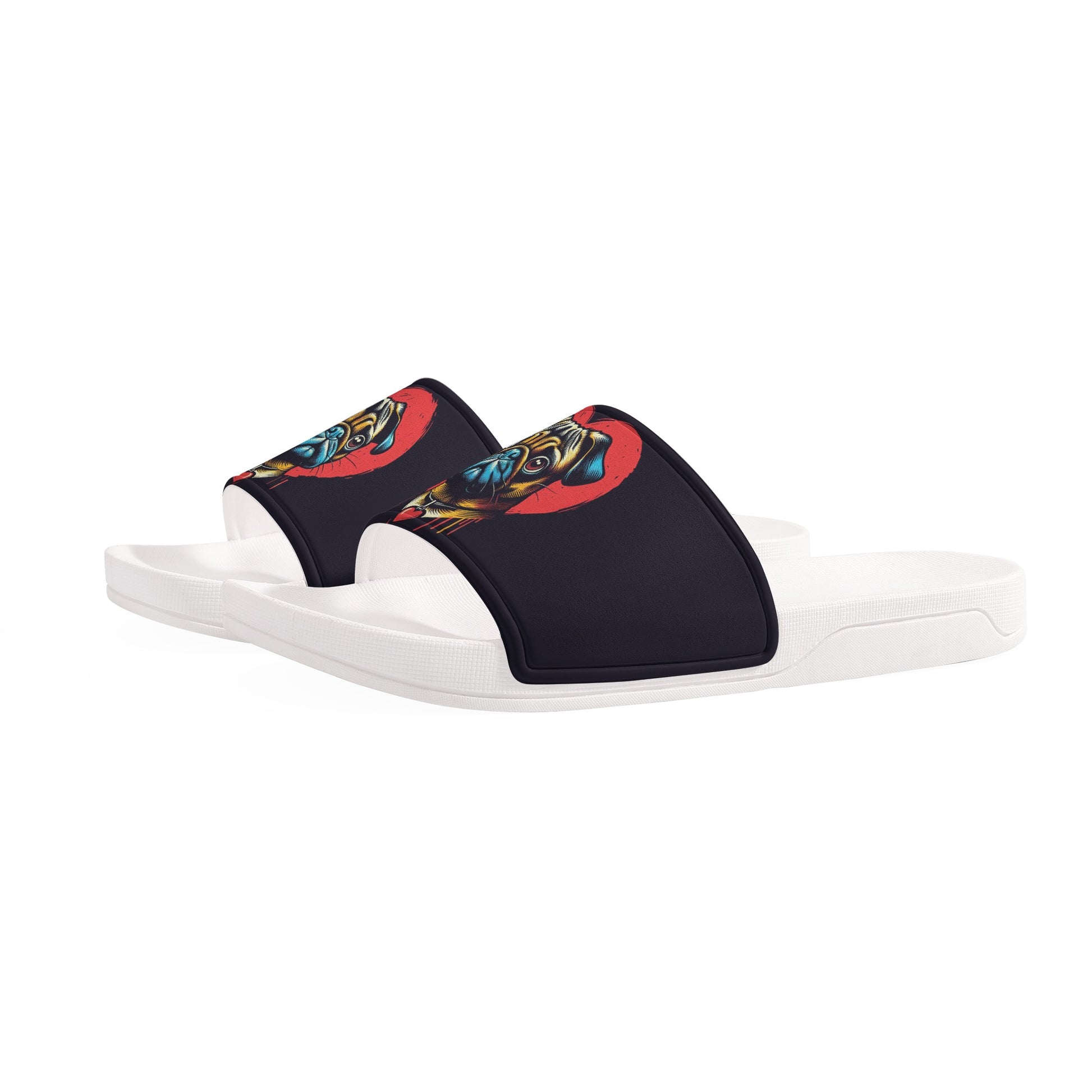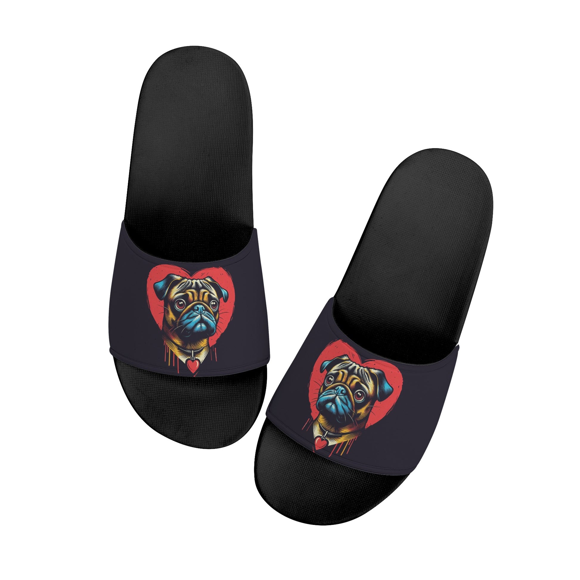 Unleash your love for pugs with our custom printed slide sandals, featuring an open toe and flat heel style for ultimate comfort. Here's what makes them special: