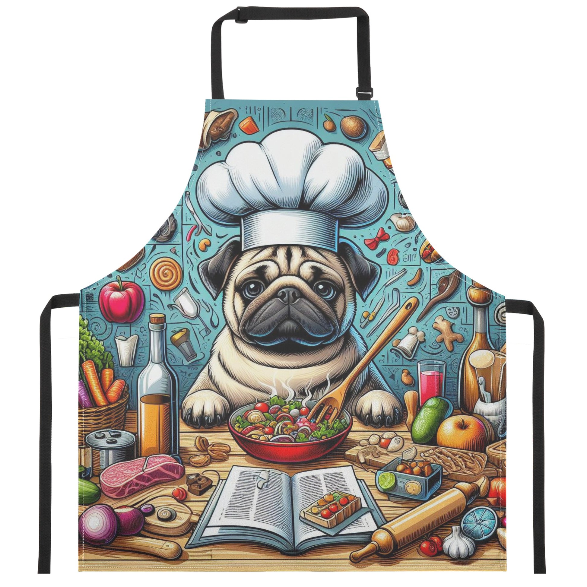 Are you a pug lover who enjoys cooking or painting? Then you will love this apron featuring a cute pug design. This apron is made of high-quality polyester fabric that is durable and easy to clean. It has an adjustable neck strap and long waist straps to fit your body comfortably. Whether you are in the kitchen or in the studio, this apron will protect your clothes from spills and stains. Plus, it will show off your love for pugs in a fun and stylish way. To care for this apron, simply hand wash or machine wash and dry. Order yours today and get ready to unleash your creativity with your pug apron. 🐶