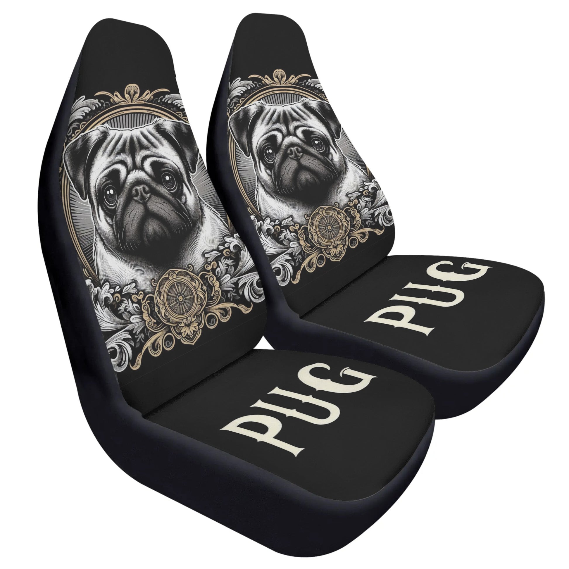 • Protection with Personality: Our 2-piece car seat cover set not only adds a vibrant touch to your car's interior but also protects your seats from spills, stains, and the wear and tear of daily adventures with your pug.