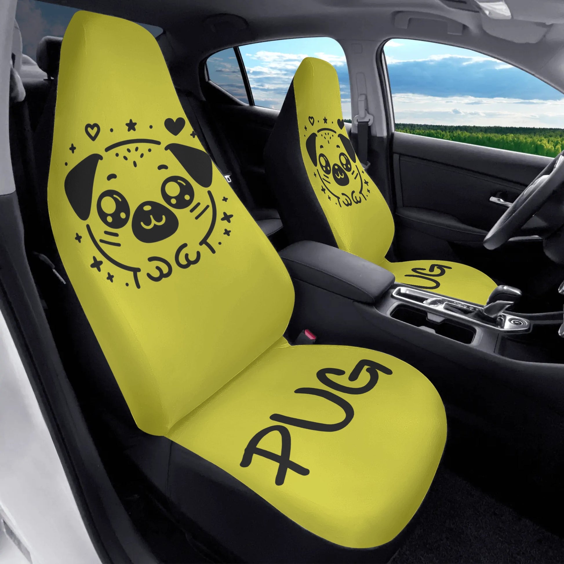 • Protection with Personality: Our 2-piece car seat cover set not only adds a vibrant touch to your car's interior but also protects your seats from spills, stains, and the wear and tear of daily adventures with your pug.