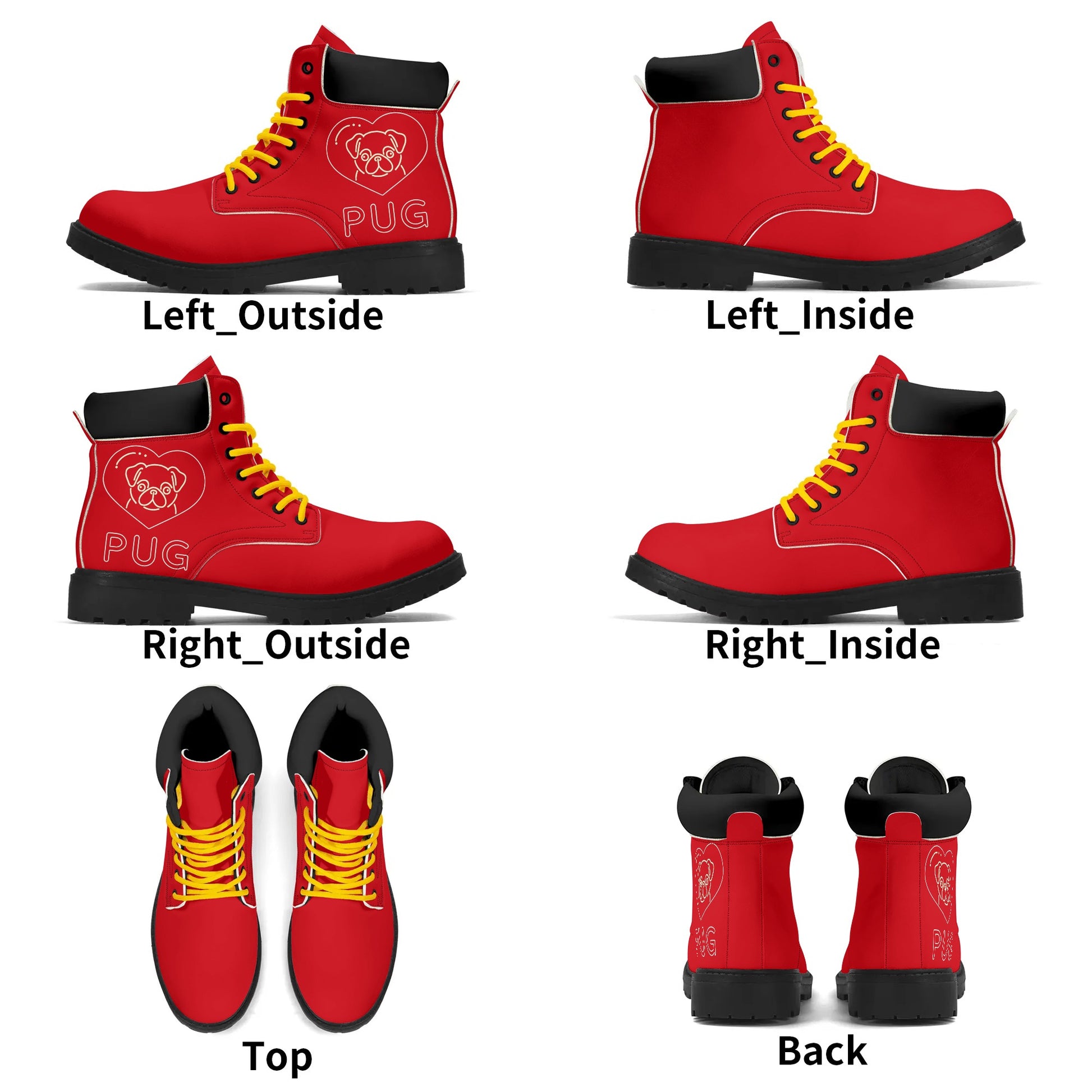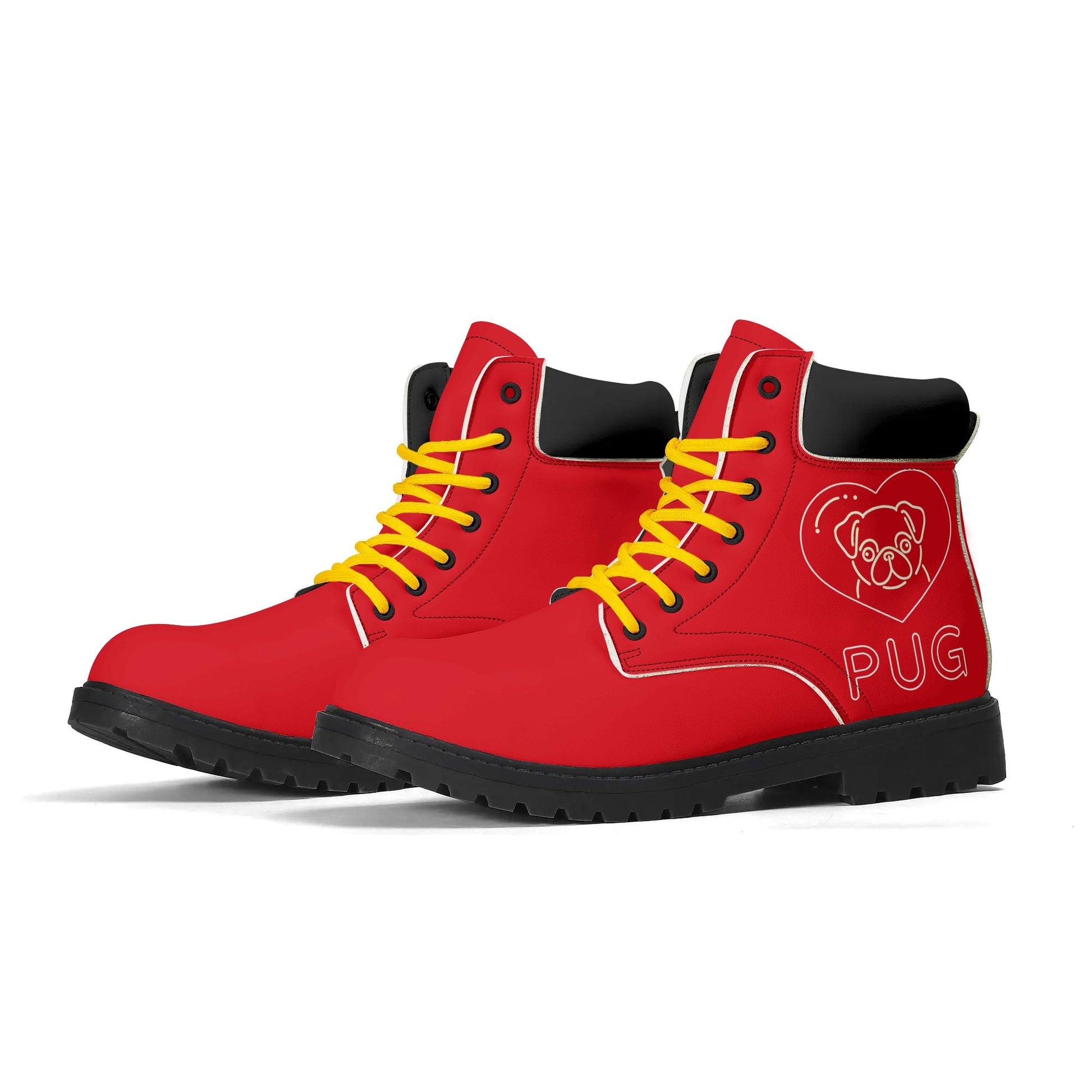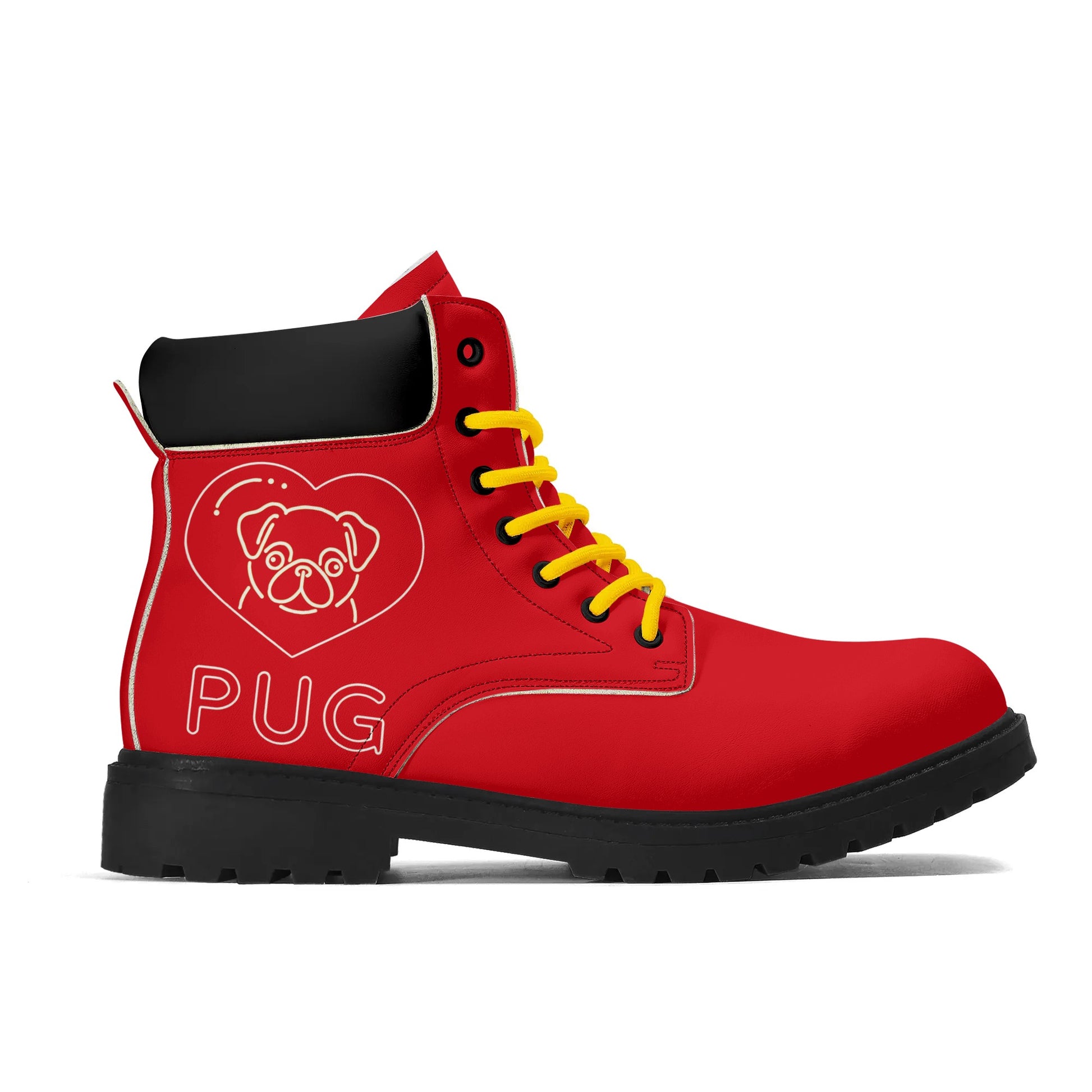 • Rugged Details: Custom-developed reinforced eyelets and polyester laces enhance the rugged aesthetic, making these boots a perfect match for the pug lover's adventurous spirit.