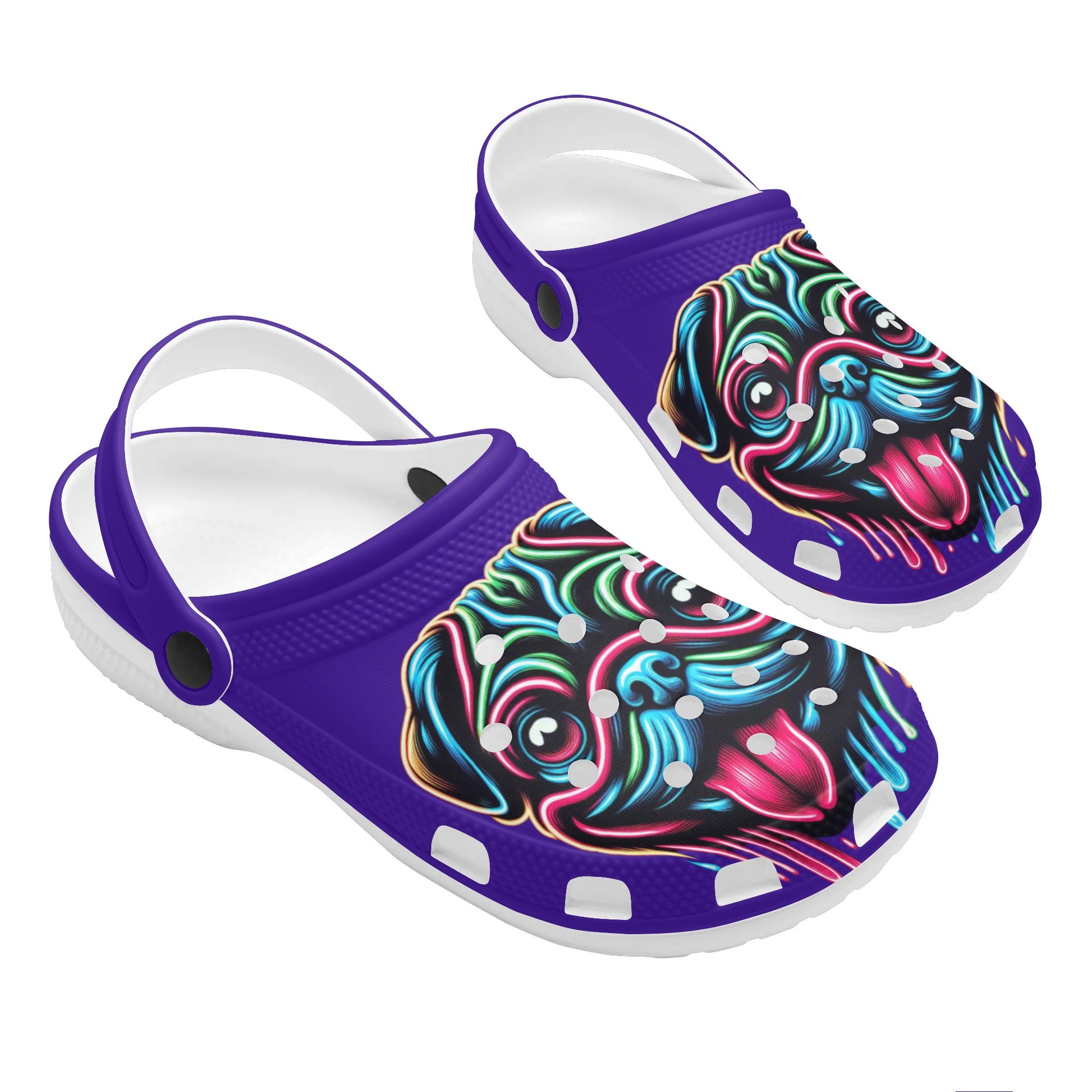 Custom Pug Print Clogs! Tailored for the pug aficionado, these clogs are a symphony of style and practicality. Here's what makes them special: