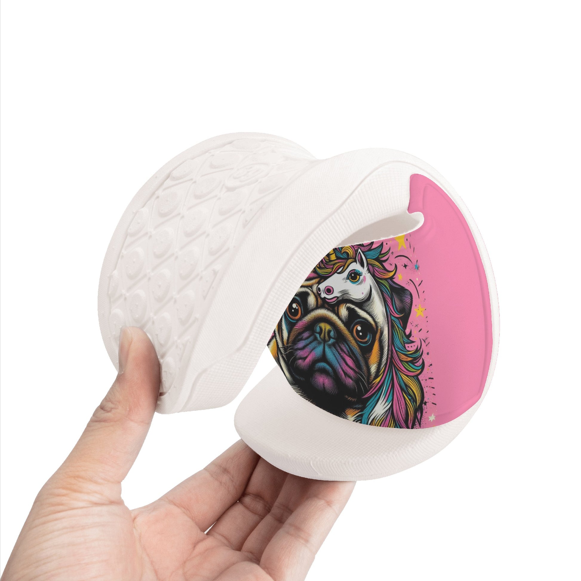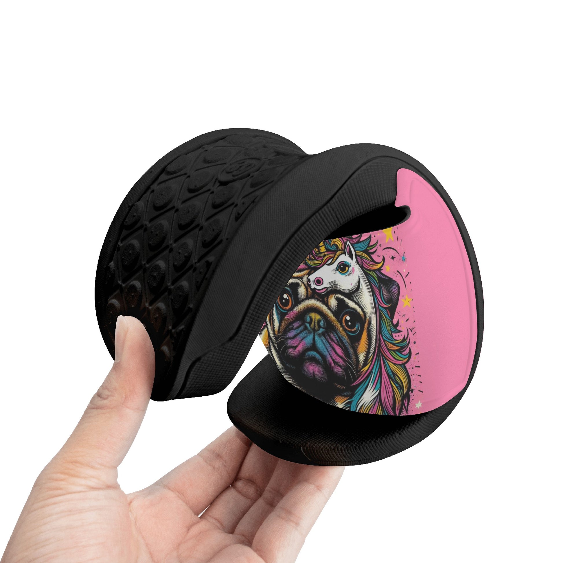 Embrace the pug life with every step in these stylish, comfortable, and durable slide sandals!