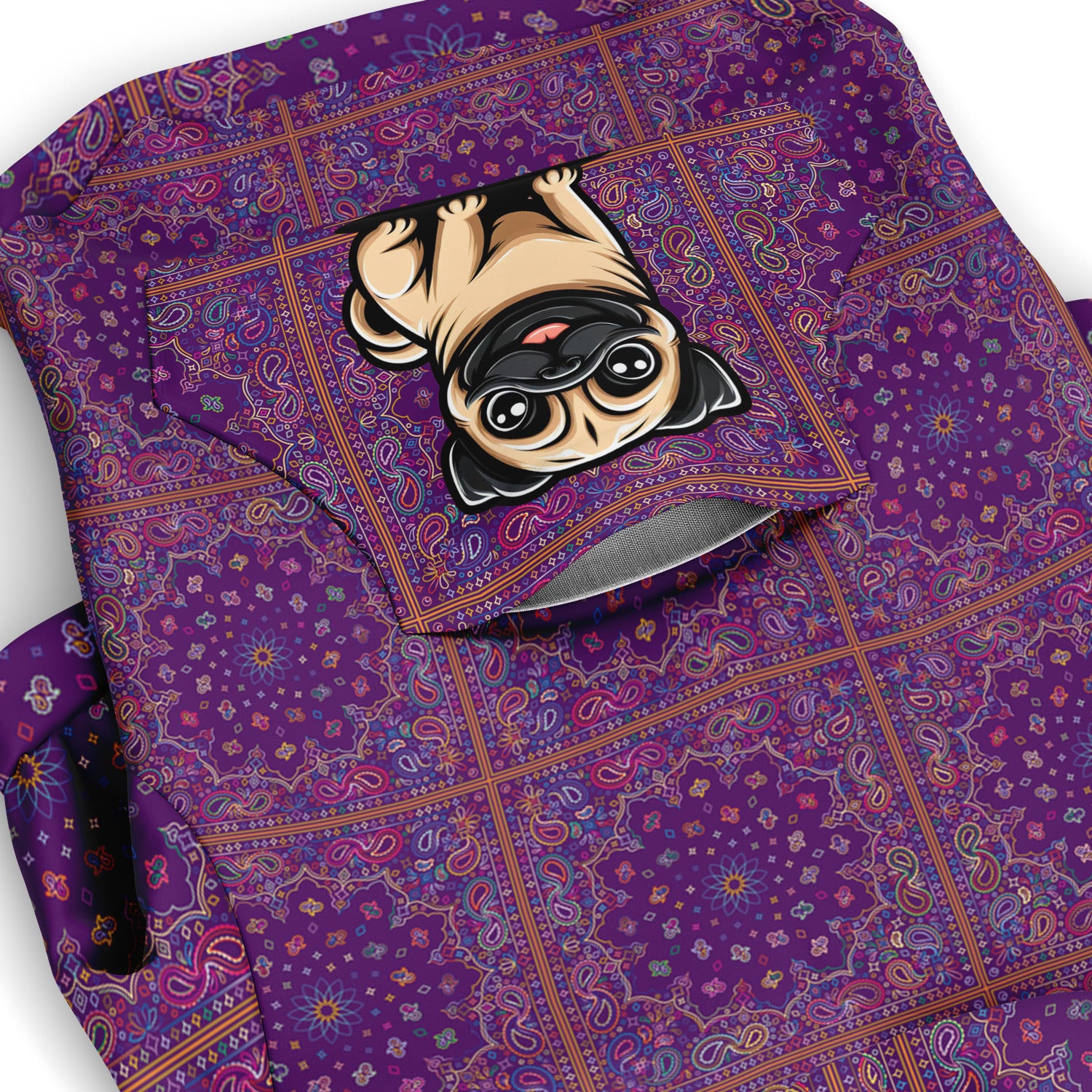 Designed with practicality in mind, our hoodie features a front zipper closure, allowing for easy fitting. The small opening on the upper back caters to dog harness users, ensuring that your Pug can stay stylish and secure during walks. Additionally, a sturdy velcro pocket on the back provides a convenient space to store treats for those rewarding moments.