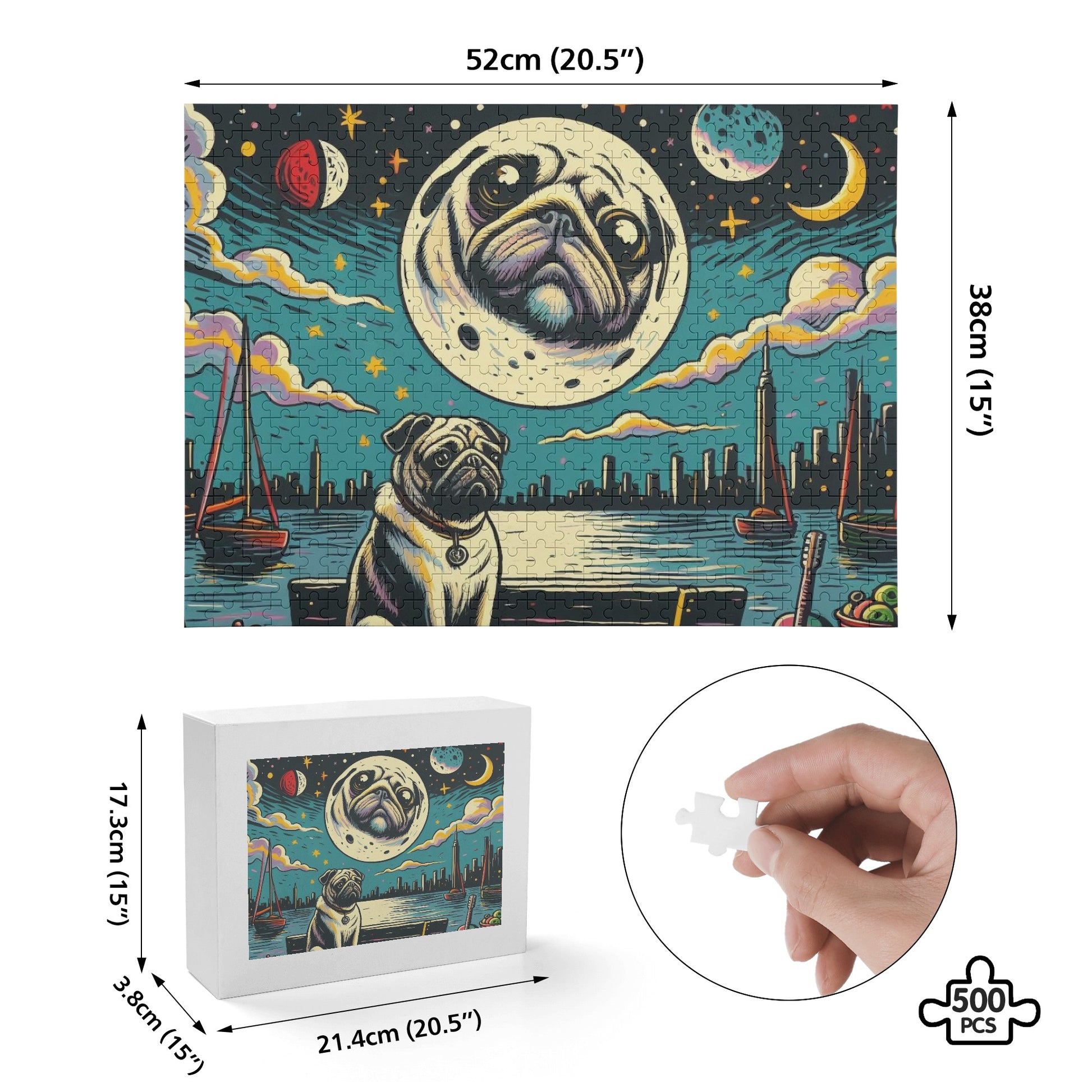 Introducing our Pug Lover's Delight: The 500-Piece Wooden Puzzle!
