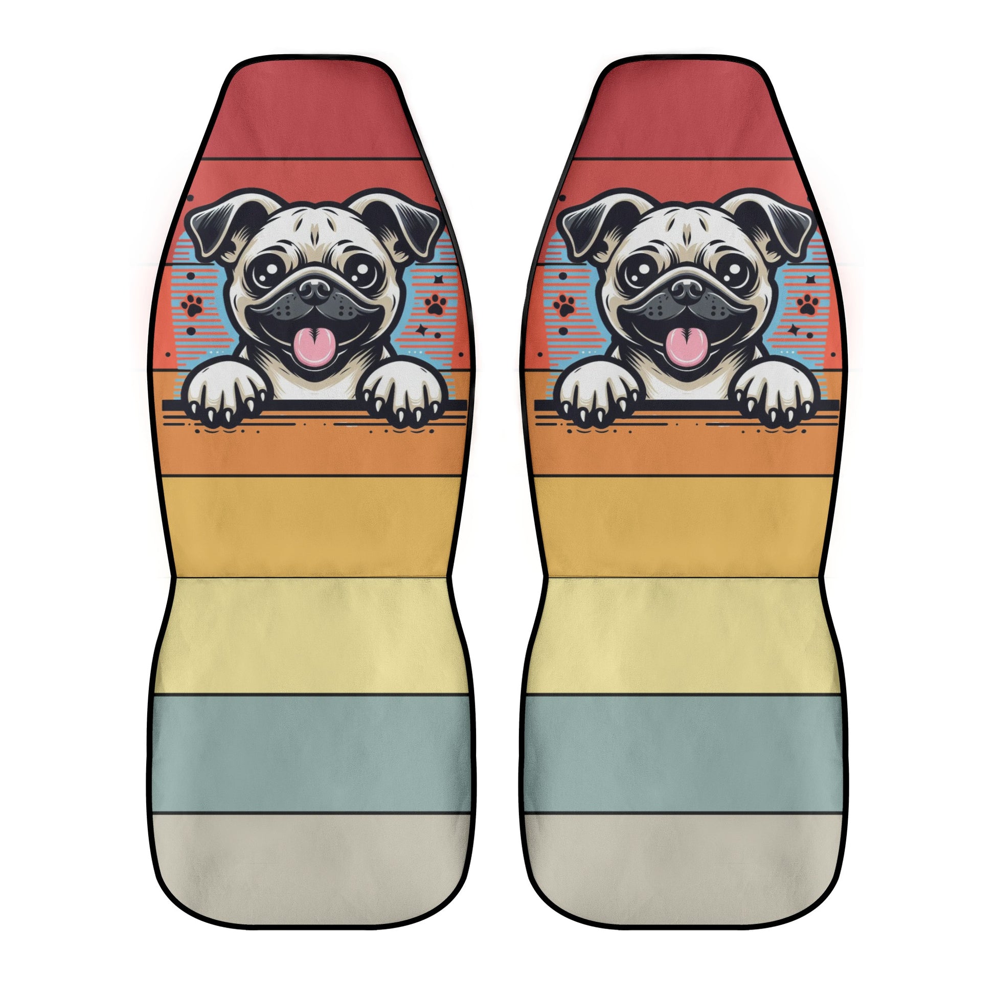 • Protection with Personality: Our 2-piece car seat cover set not only adds a vibrant touch to your car's interior but also protects your seats from spills, stains, and the wear and tear of daily adventures with your pug.